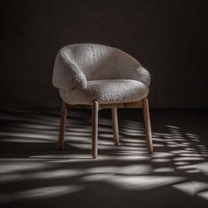 Silla Jacquard de estilo contemporáneo fabricado en madera de olmo en color marrón combinado con poliéster en color beige.