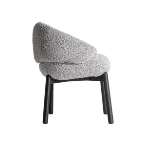 Silla Jacquard de estilo contemporáneo fabricado en madera de olmo en color blanco negro combinado con poliéster en color gris con acabado jaspeado.