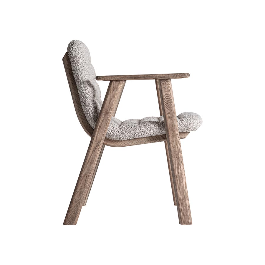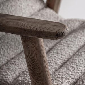 Silla Jacquard fabricado en madera roble en color marrón combinado con poliéster en color gris.