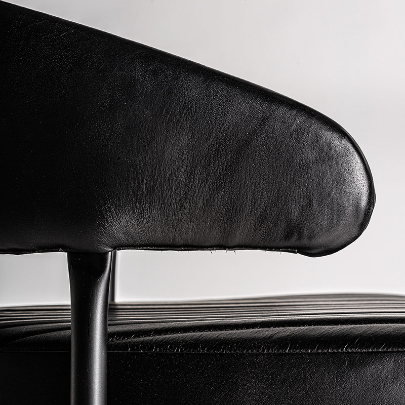 Silla jarpen de estilo vintage fabricado en piel en color negro combinado con hierro.