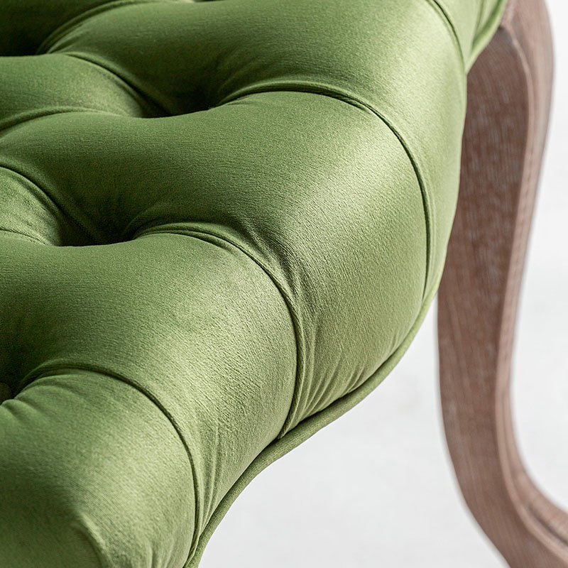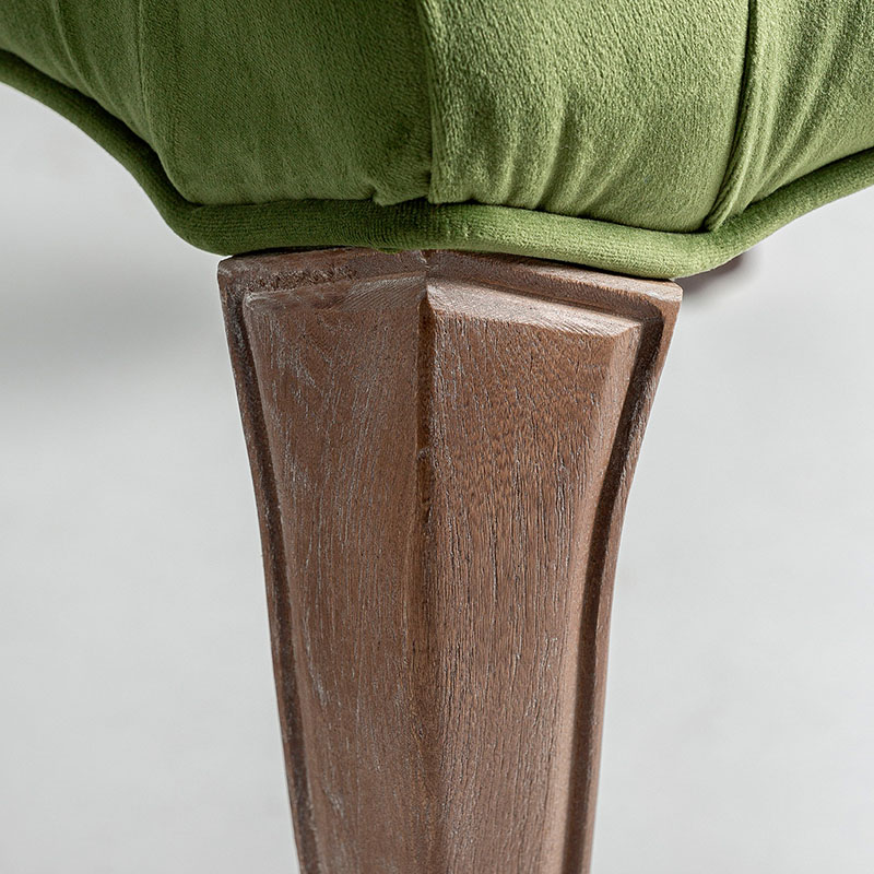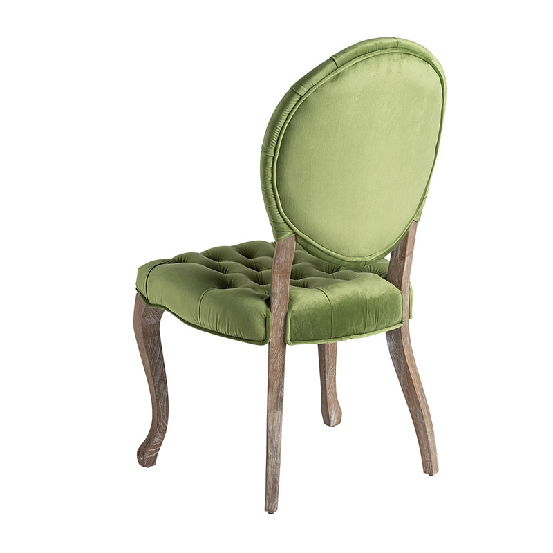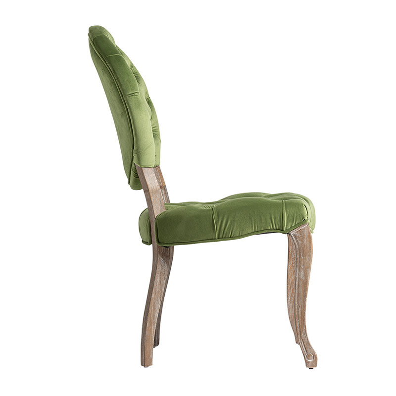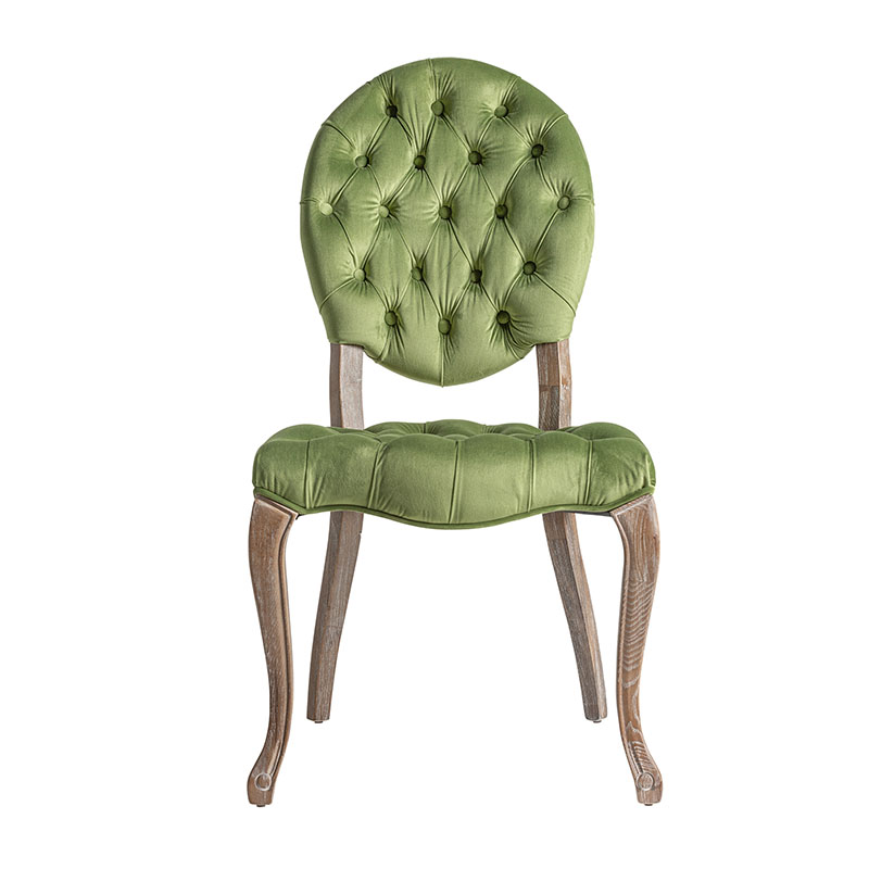 Silla jena, en color verde, de estilo provenzal. Fabricado en madera de abeto, combinado con terciopelo y espuma.
