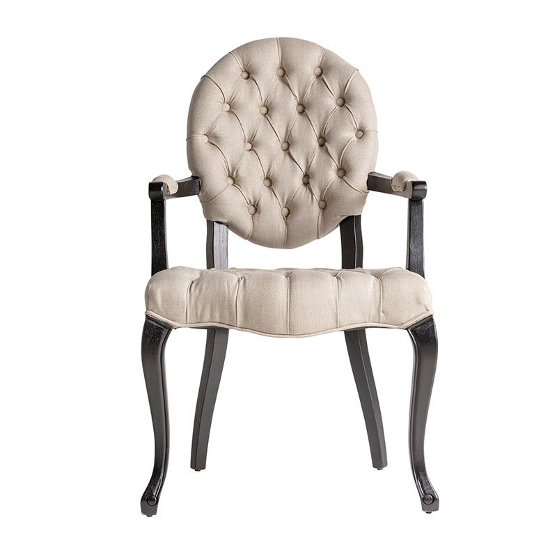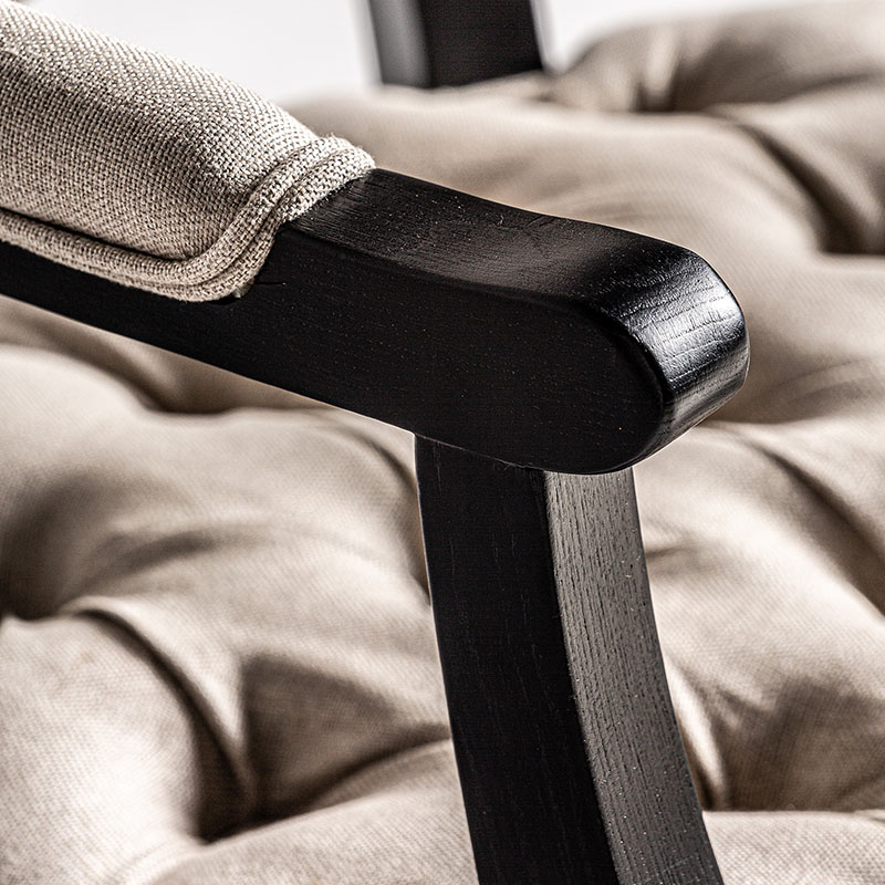 Silla jena en color negro gris de estilo clásico. Fabricado en madera de fresno combinado con lino y espuma.