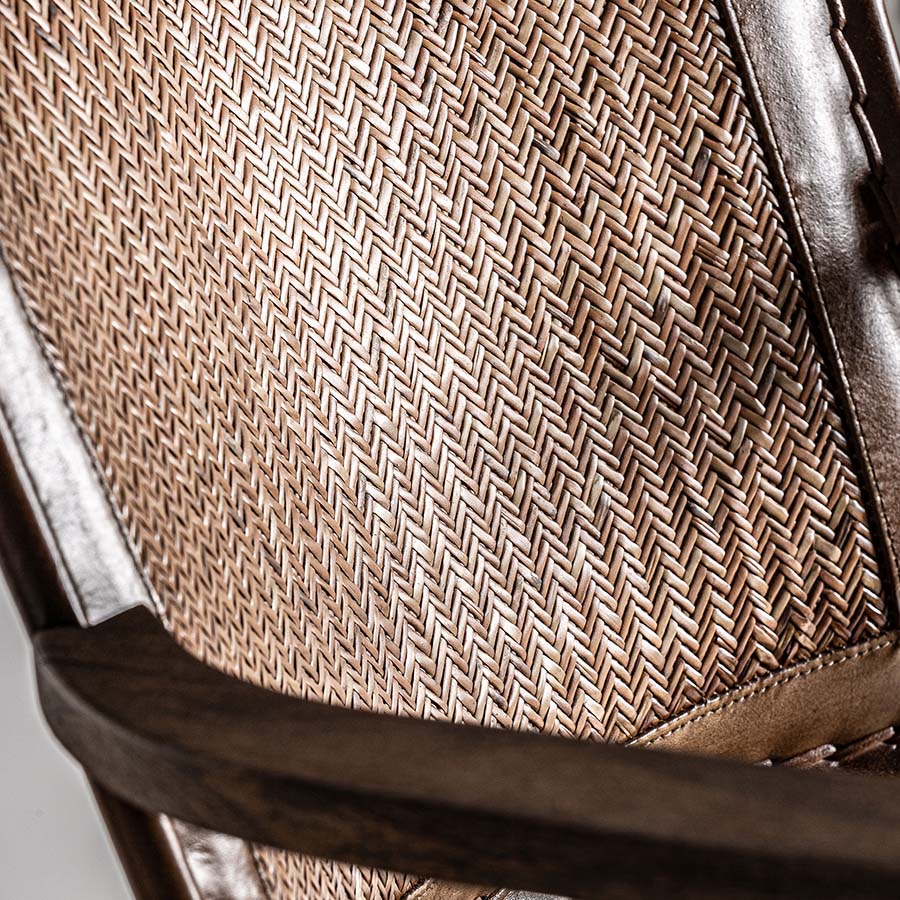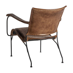 Silla krokom de estilo vintage fabricado en piel en color marrón combinado con hierro y ratán.
