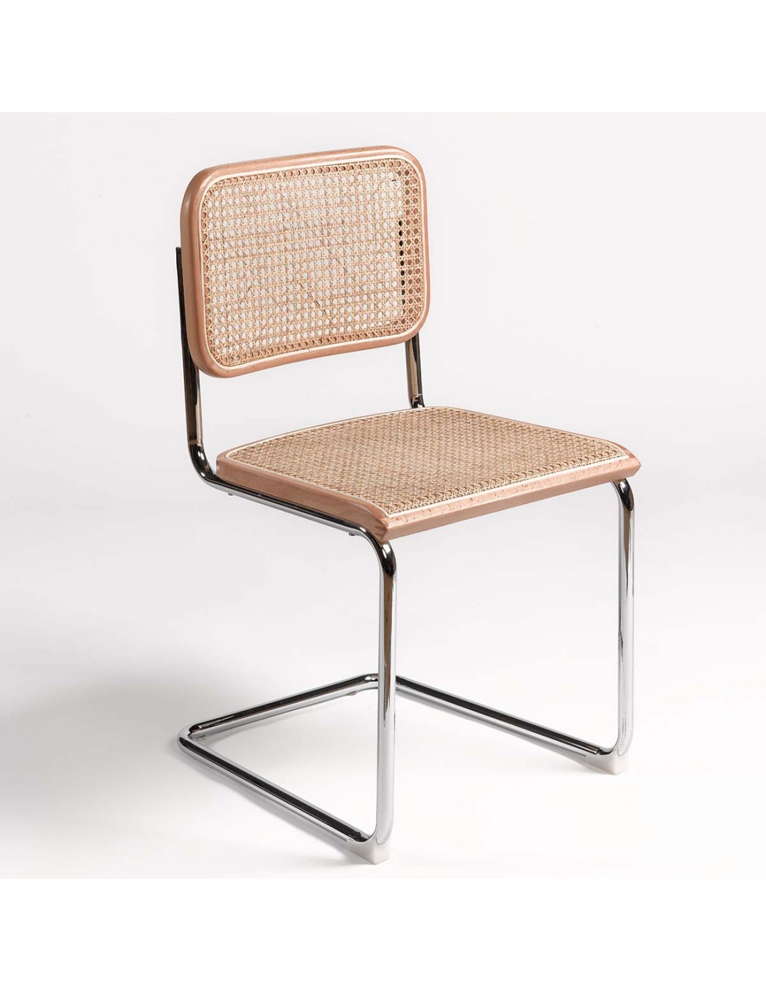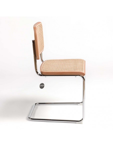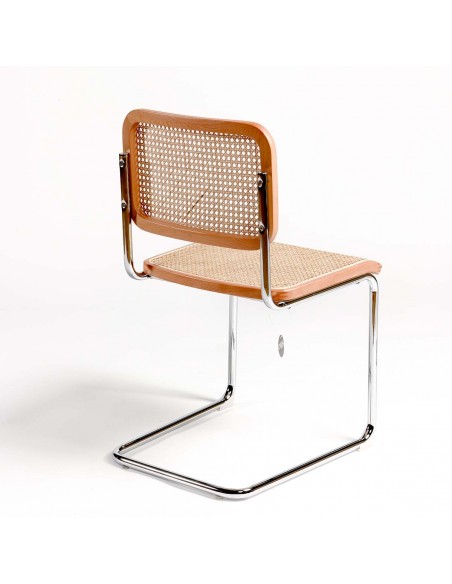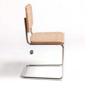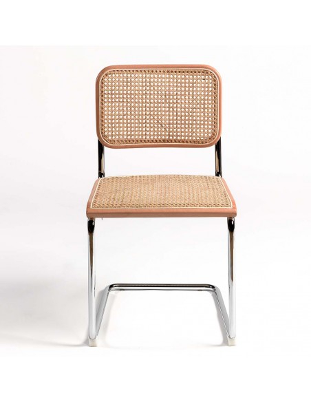 SILLA MADERA NATURAL RATÁN NATURAL Y PATA CROMADA