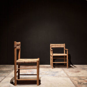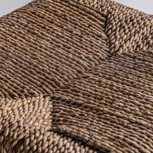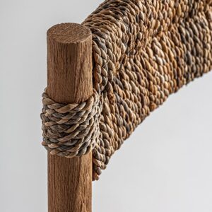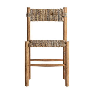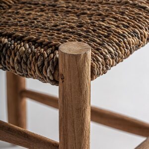 Silla manhula de estilo colonial fabricado en madera de teka en color marrón combinado con fibra natural.