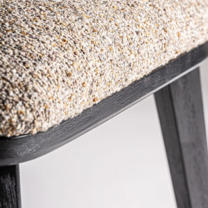 Silla malters de estilo art deco fabricado en madera de caucho en color negro combinado con algodón en color marrón y espuma.