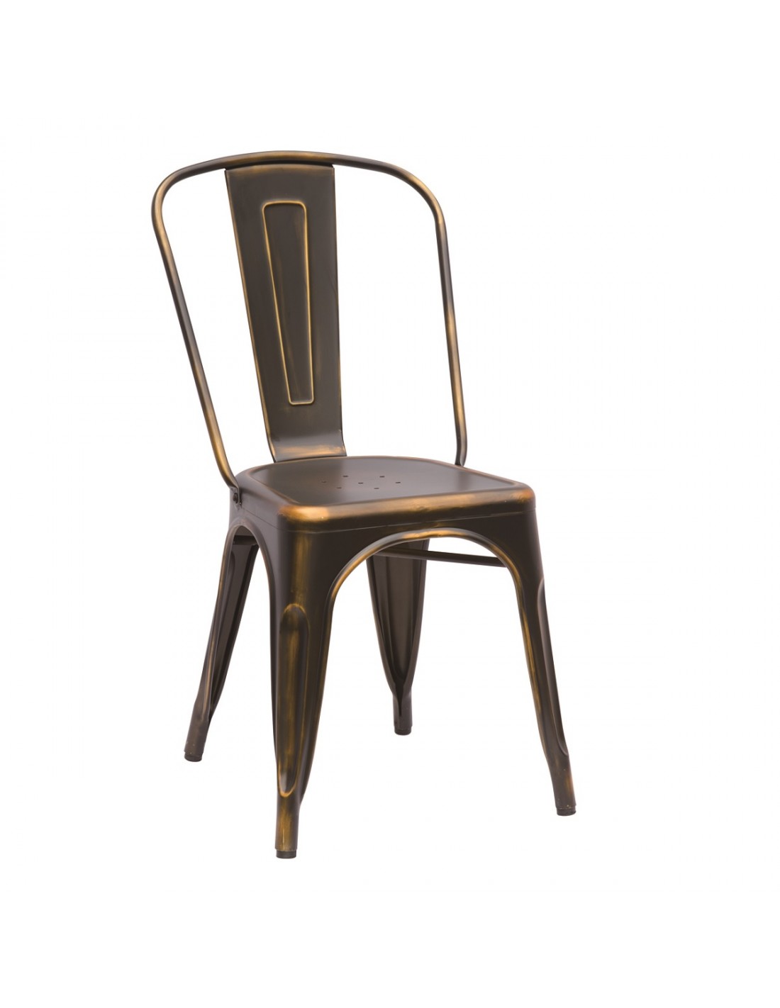 Silla de mesa o comedor, ideal para comidas familiares en un marco contemporáneo. Esta silla de metal es de cobre envejecido de color negro. Combina elegancia y modernidad. Es una silla muy práctic