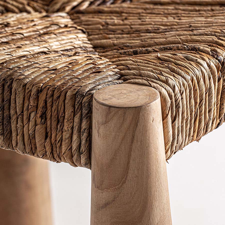 Silla nekta de estilo étnico fabricado en madera de teka en color marrón combinado con enea.