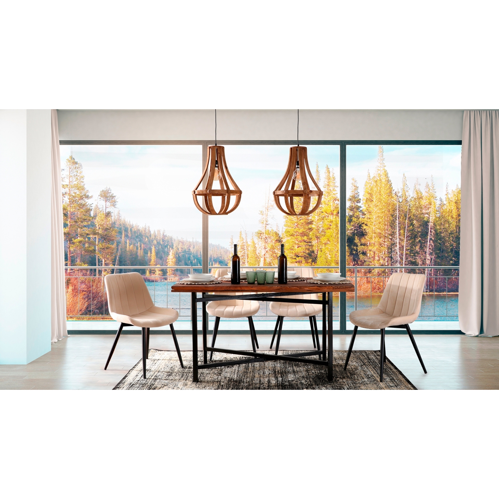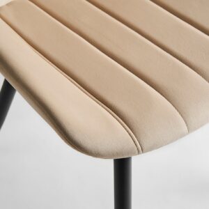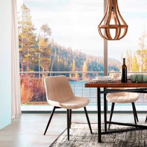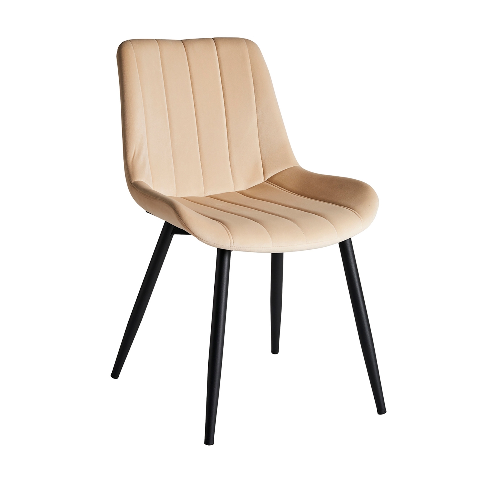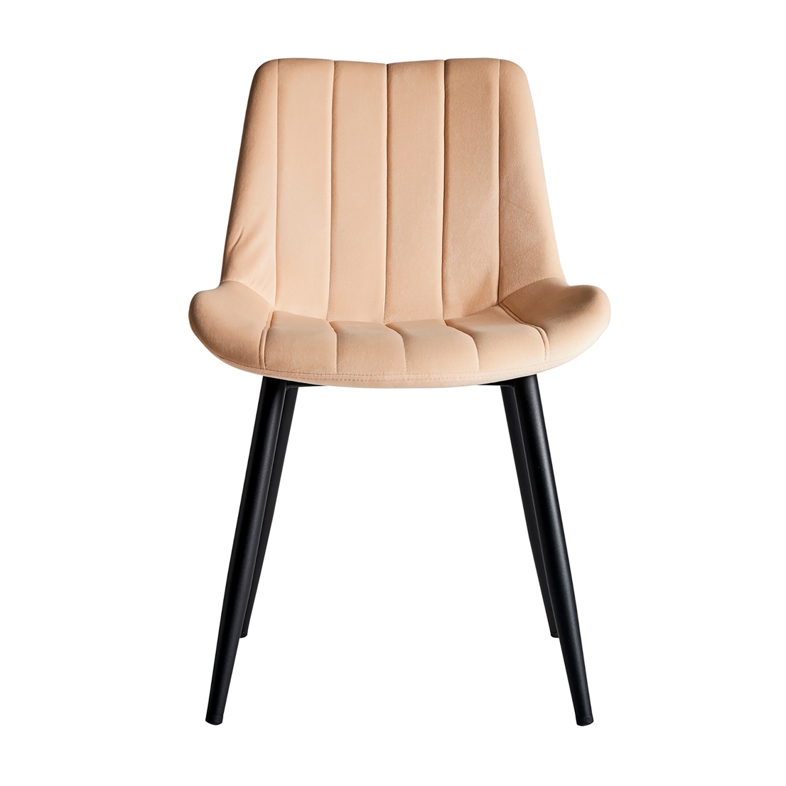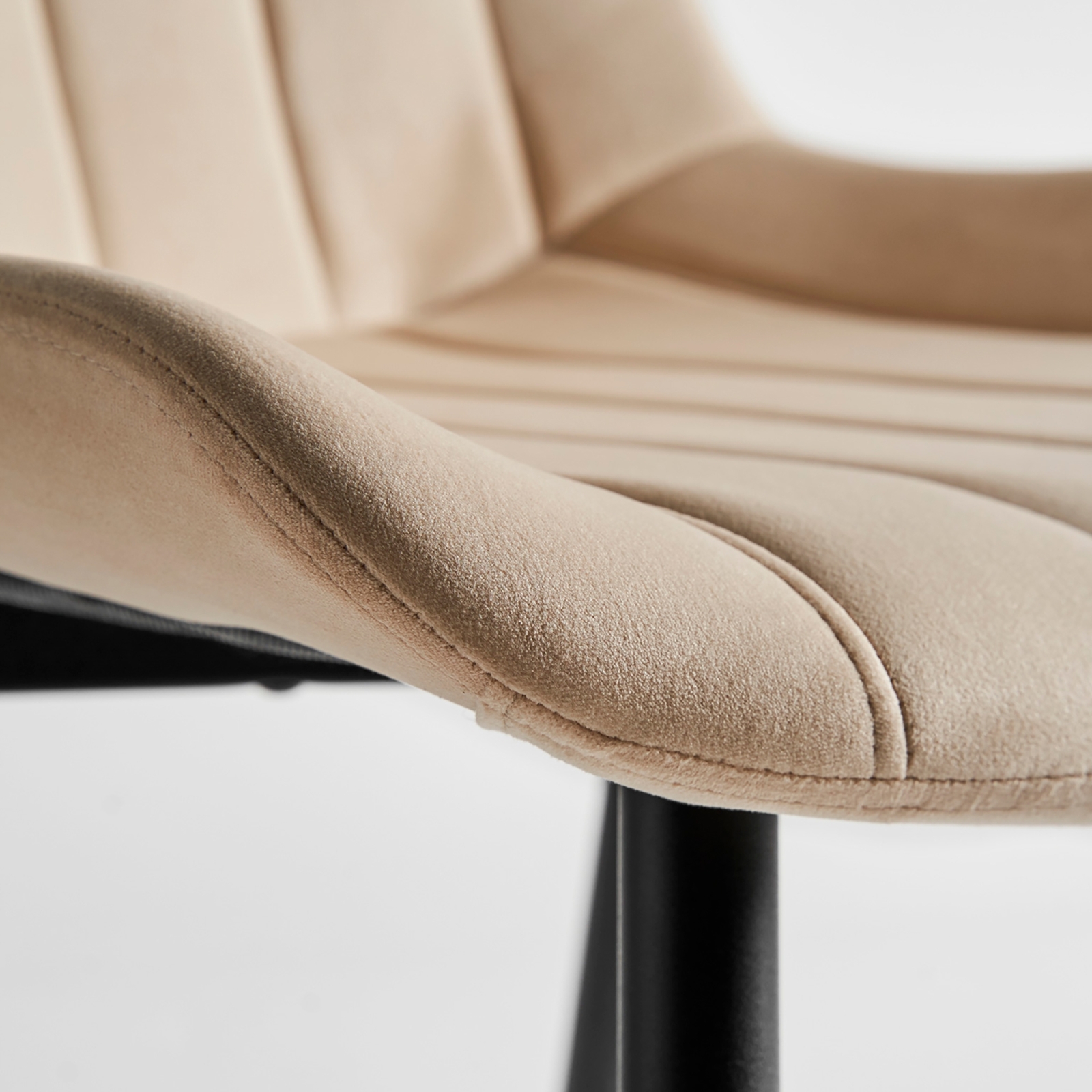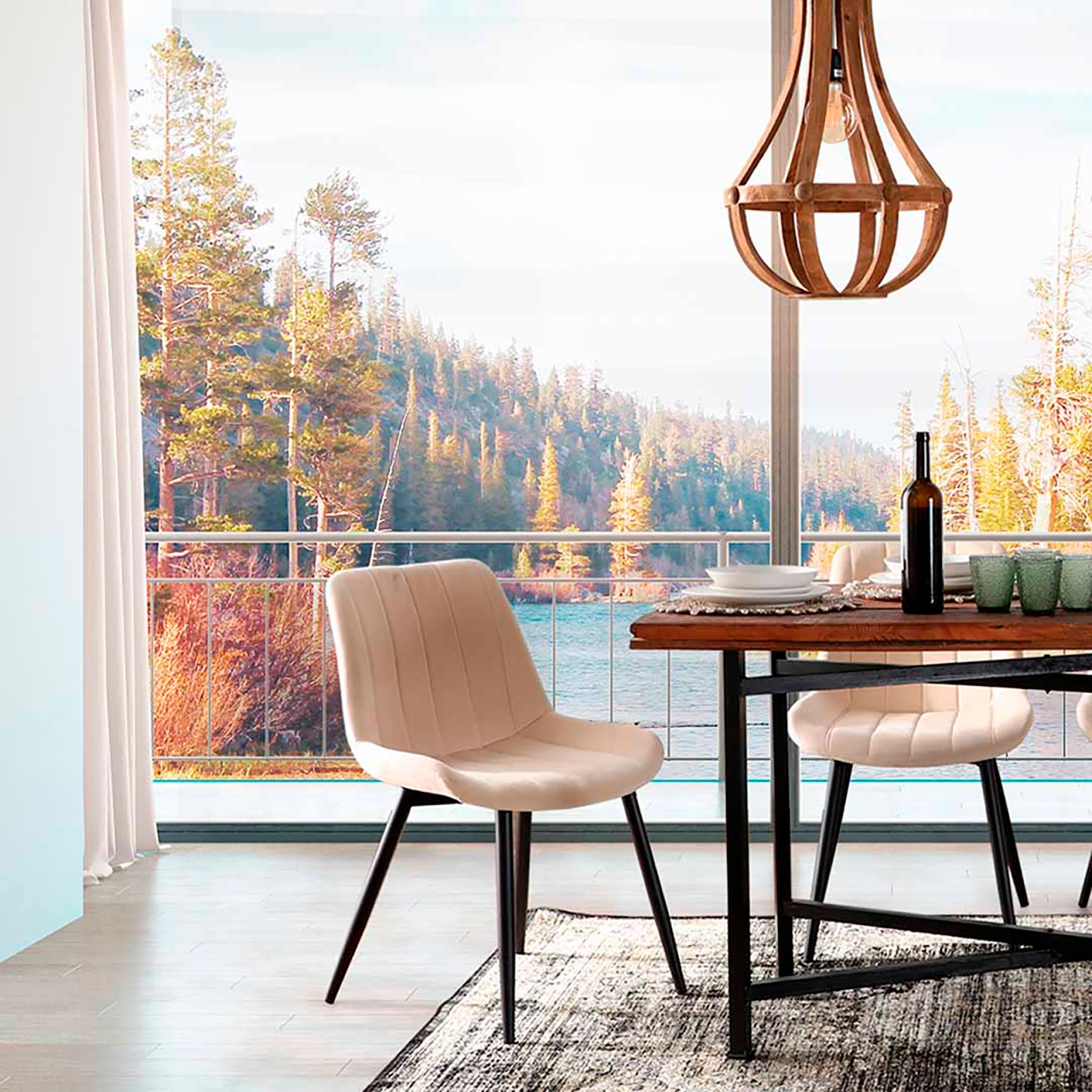 Tapizada en un elegante terciopelo color crema, la silla Orani combina una estructura sencilla y versátil con cuatro patas de madera en color negro mate. Una combinación de colores exitosa y elegante que quedará perfecta en cualquier salón.