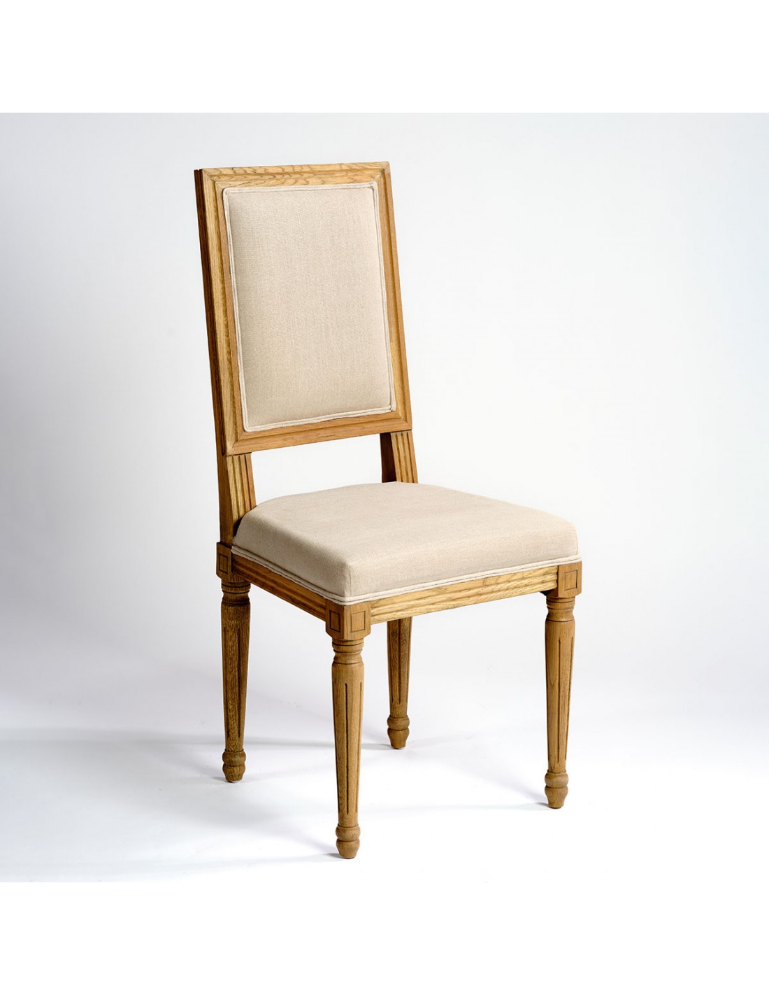 Esta silla es elegancia pura. Se compone de cuatro patas de roble natural y 100 por ciento de lino. Esta silla de mesa le aportará a tu interior un ambiente refinado y acogedor. Es una silla sencilla y natural.