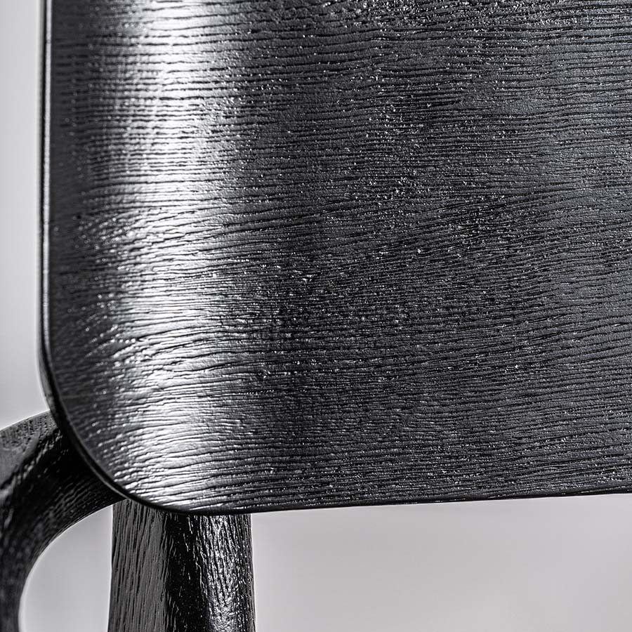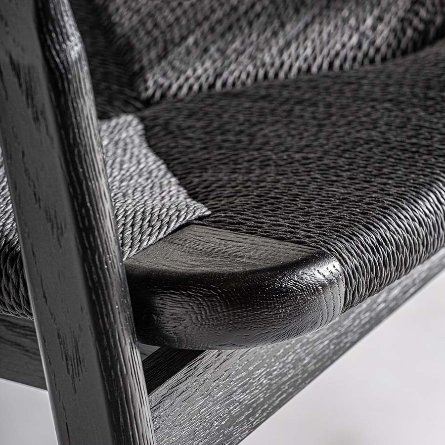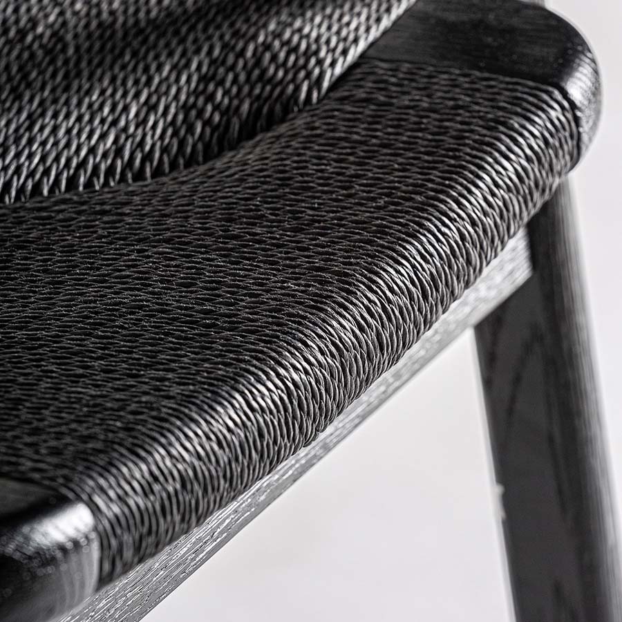 Silla tasque de estilo vintage fabricado en madera roble en color negro con acabado mate combinado con fibra natural en color negra.