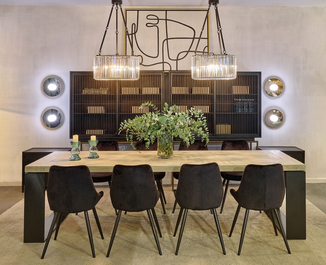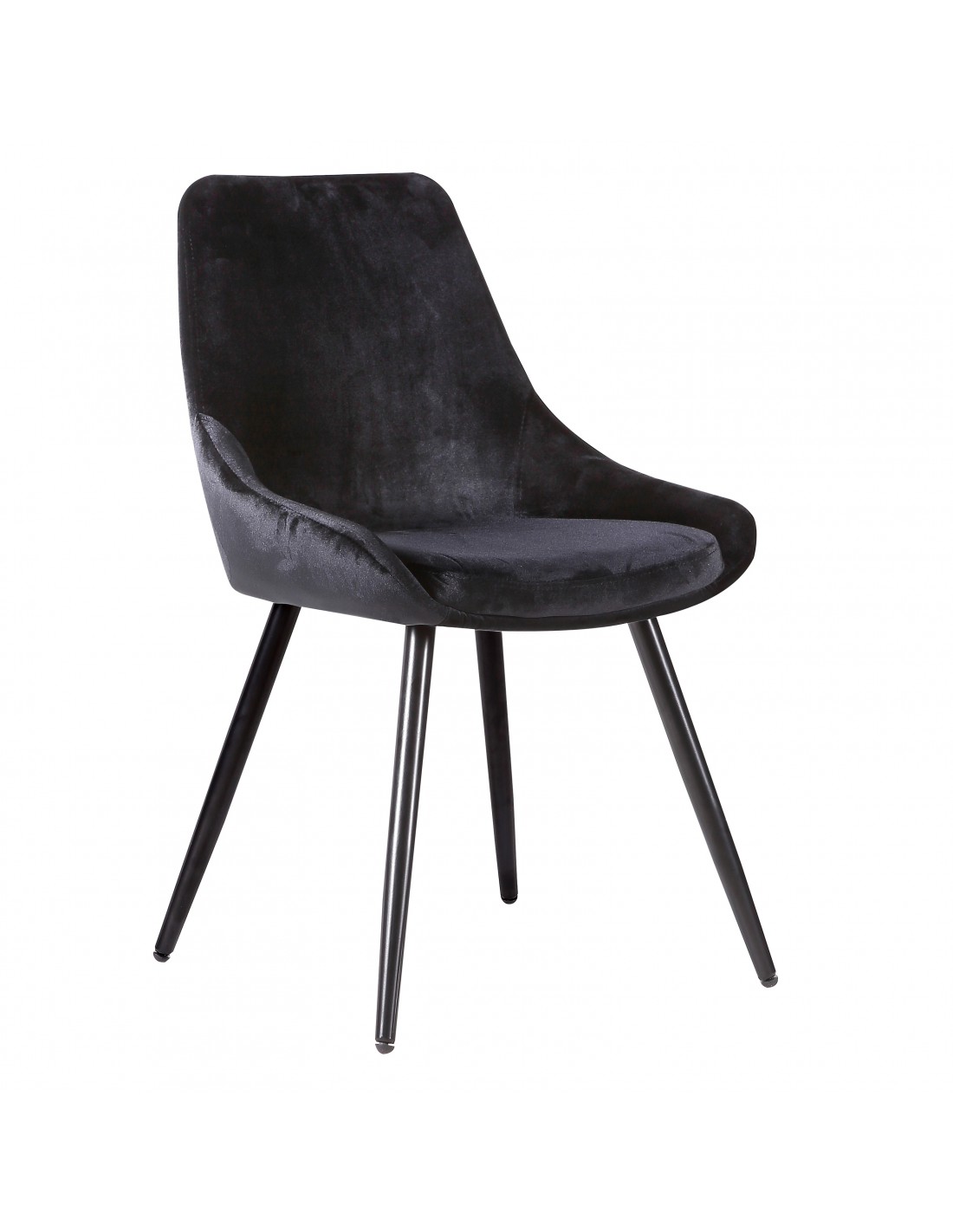 Silla con tapicería en terciopelo negro y patas de metal del mismo color. De diseño depurado, es una pieza que destaca por su alto nivel de confort. Dale a tus interiores un toque de máxima elegancia con este modelo que te ofrecemos en Crisal Decoración.
