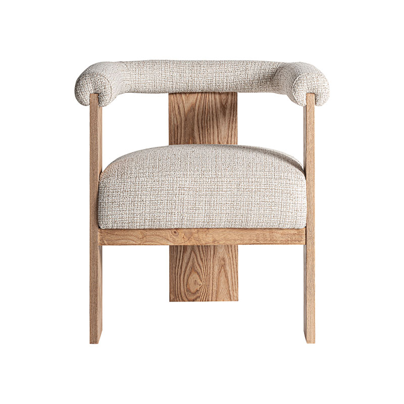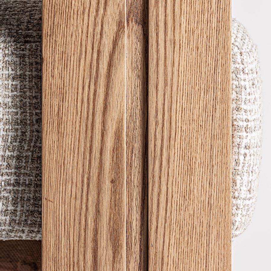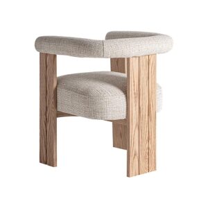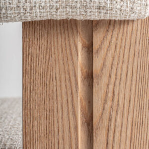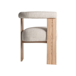 Silla ustka de estilo nórdico fabricado en madera roble en color blanco combinado con poliéster en color marrón.