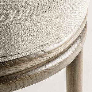 Silla bezier de estilo colonial fabricado en poliéster en color gris combinado con madera de caucho en color natural y espuma.