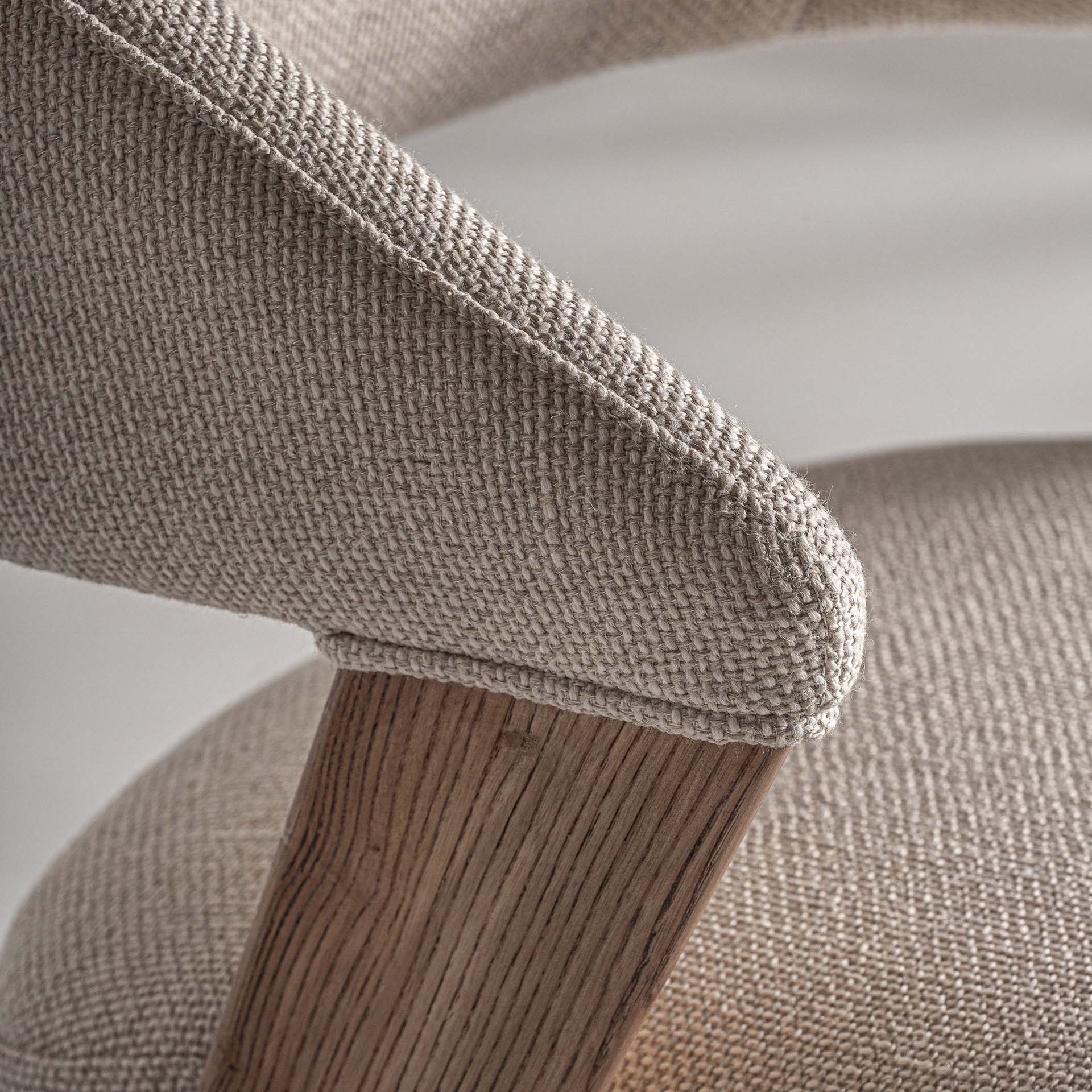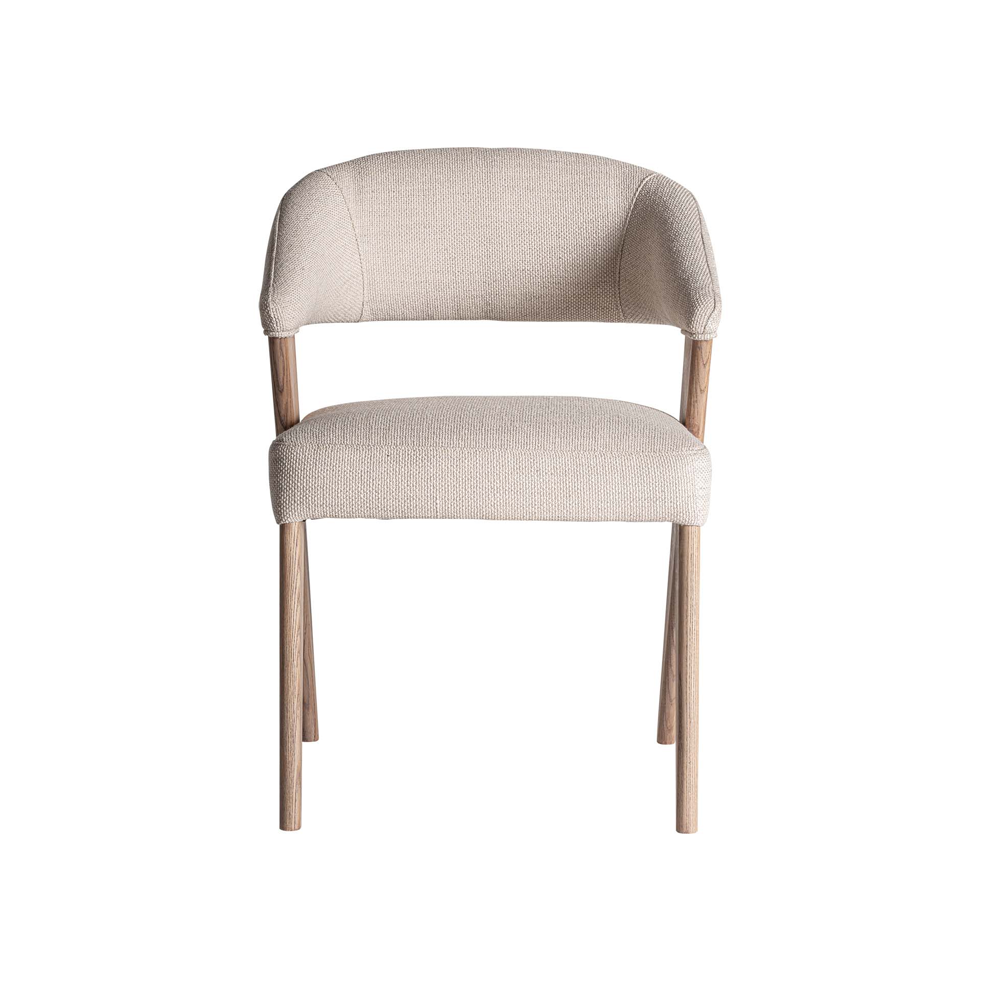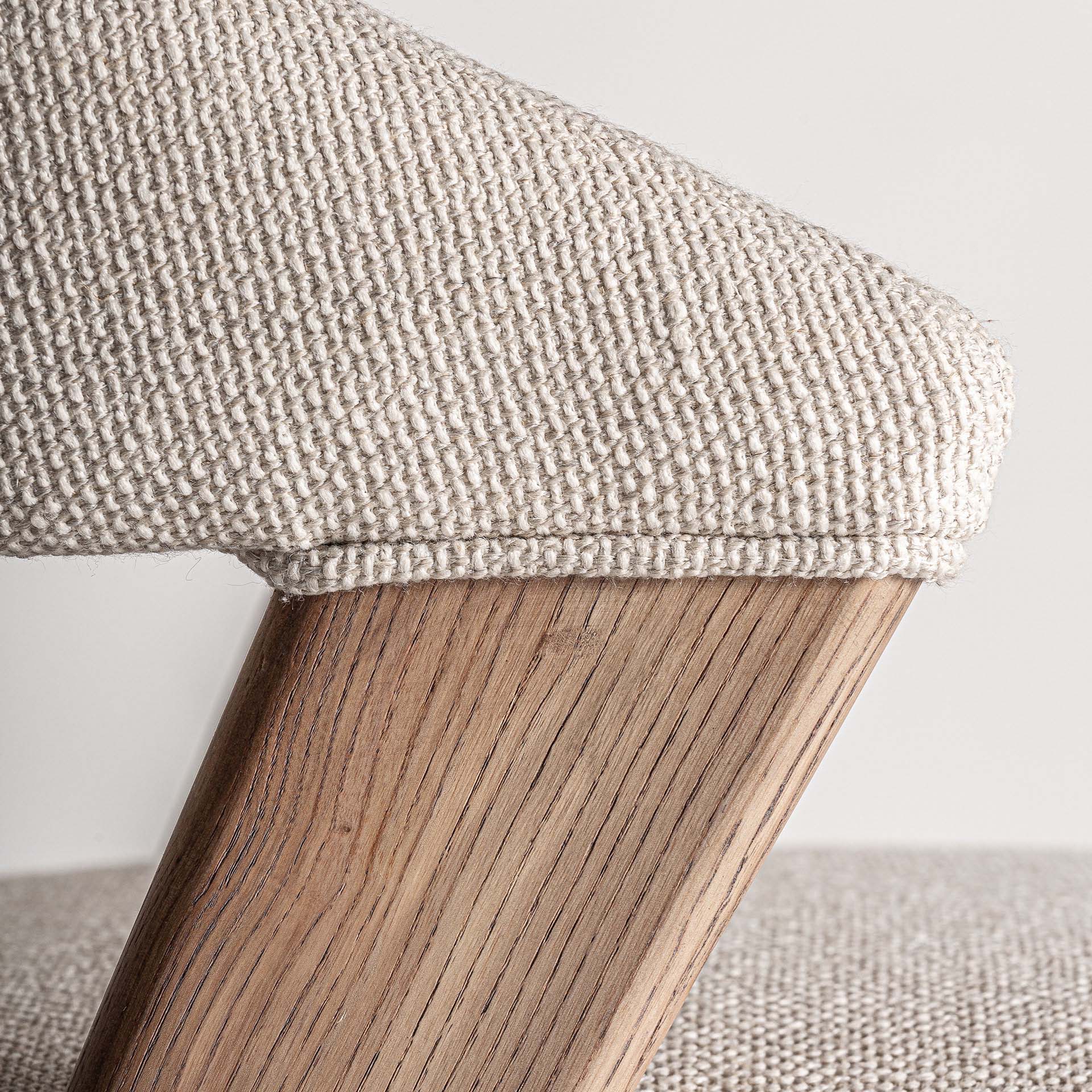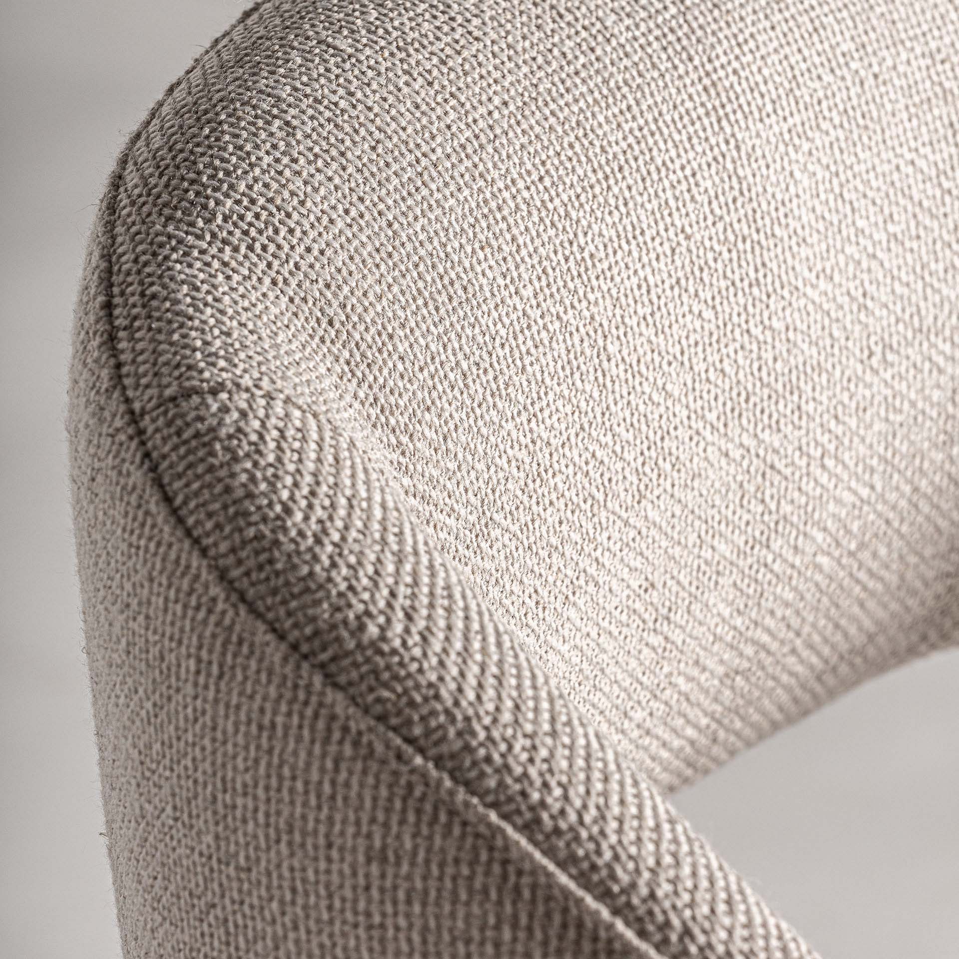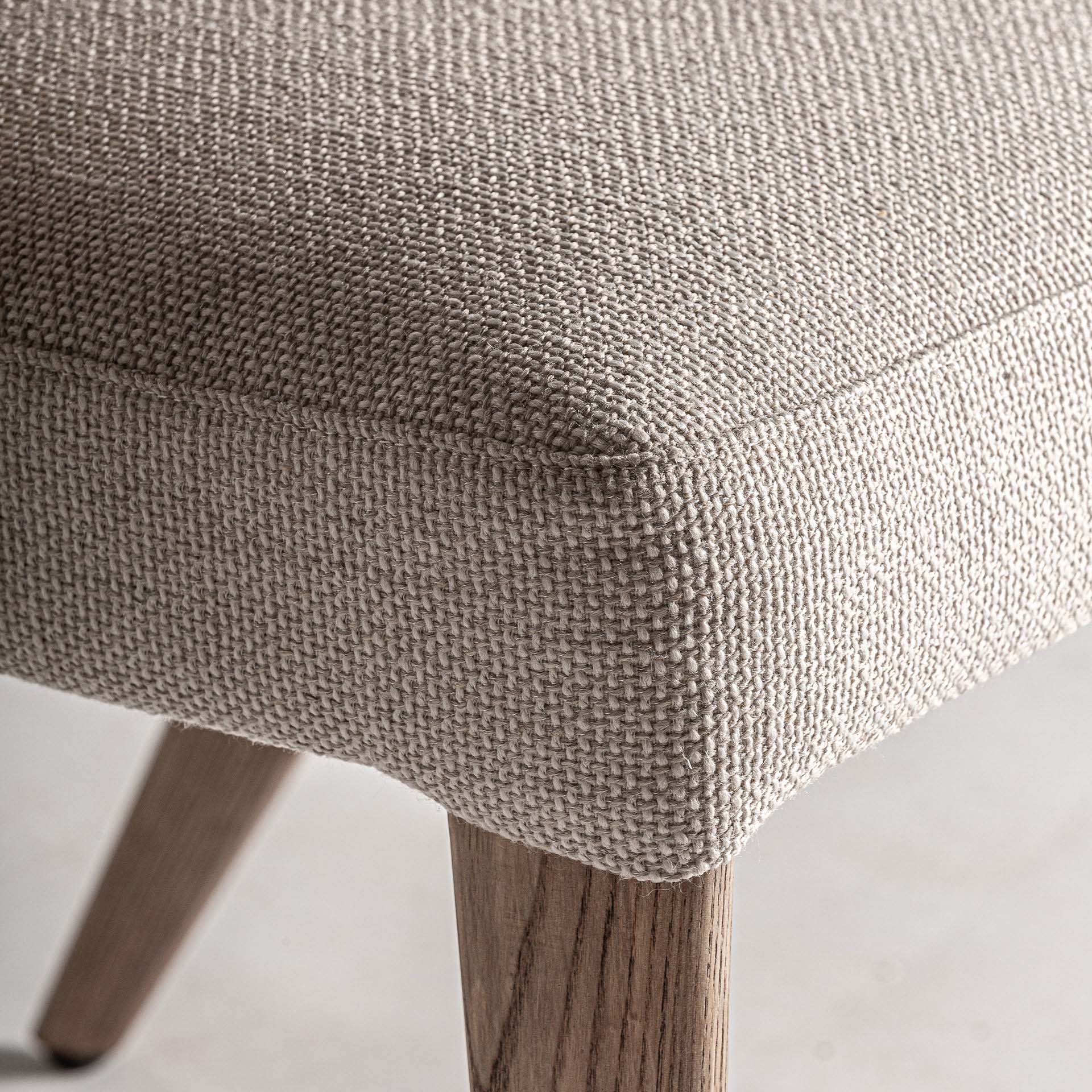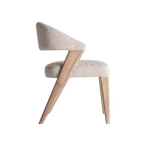 Silla Namur de estilo art deco fabricado en lino en color beige combinado con algodón y madera de fresno en color marrón.