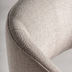 Silla Veney de estilo contemporáneo fabricado en poliéster en color beige combinado con madera roble en color marrón claro.