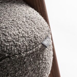 Silla Veney de estilo contemporáneo fabricado en poliéster en color gris con acabado jaspeado combinado con madera roble en color marrón y madera de caucho.
