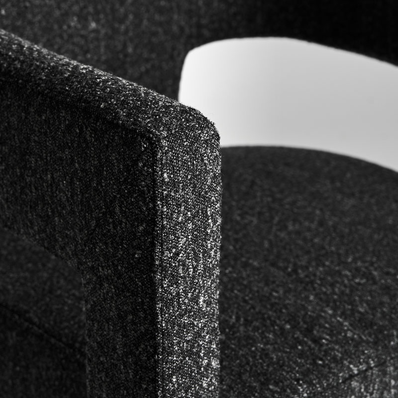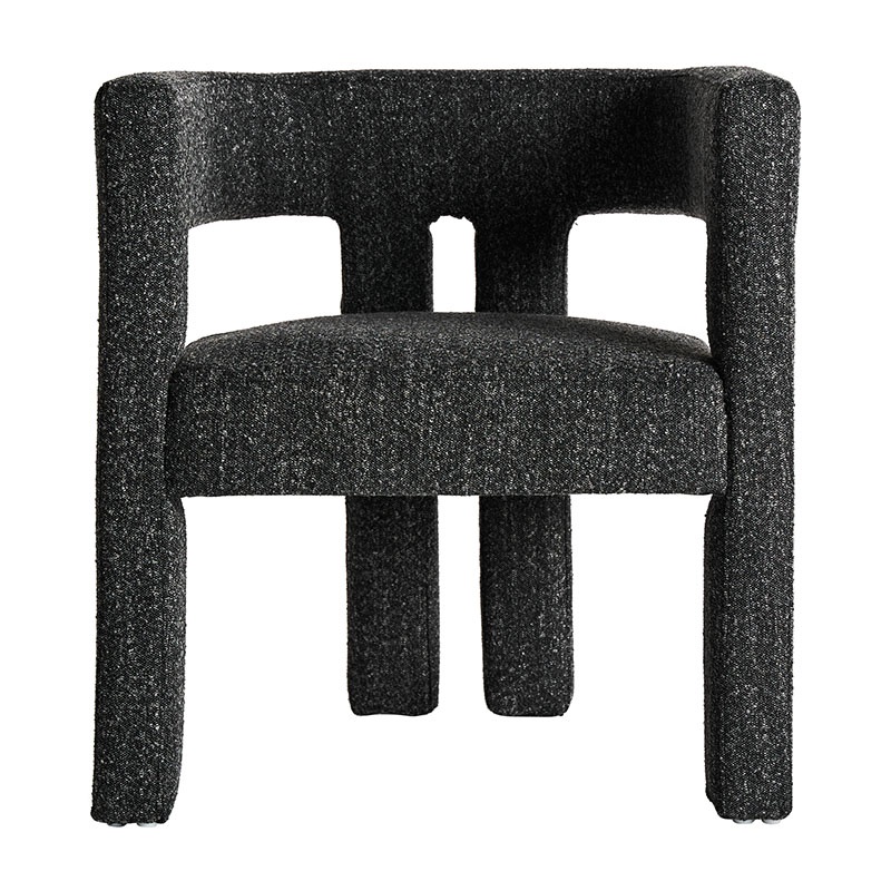 Silla vestnes, en color negro, de estilo art deco. Fabricado en algodón bouclé.