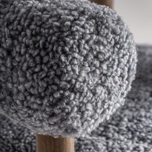 Sillón allitz de estilo contemporáneo fabricado en madera de fresno en color marrón con acabado natural combinado con poliéster en color gris y espuma.