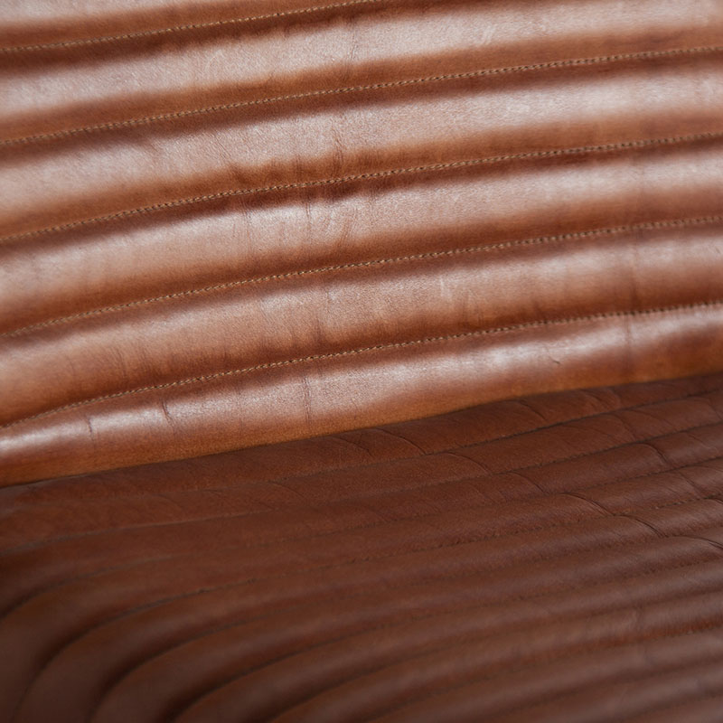Sillón Almstock de estilo vintage fabricado en cuero en color marrón combinado con hierro.