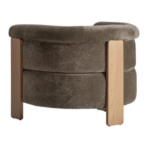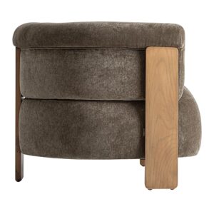 Sillón Auronzo de estilo contemporáneo fabricado en poliéster en color verde con acabado chenilla combinado con madera de pino en color marrón claro y espuma.