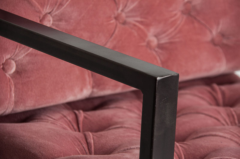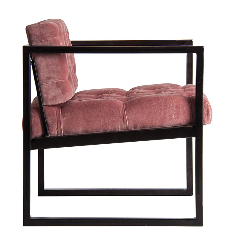 Sillón blatno, en color rosa palo, de estilo shabby chic. Fabricado en hierro, combinado con terciopelo y espuma.