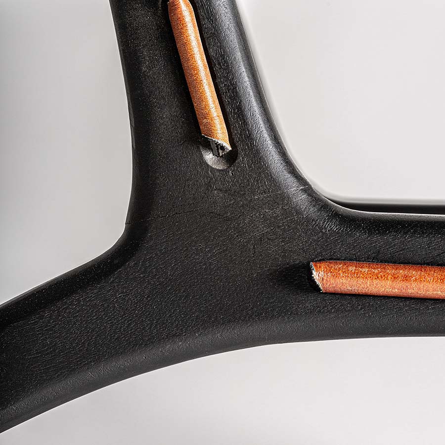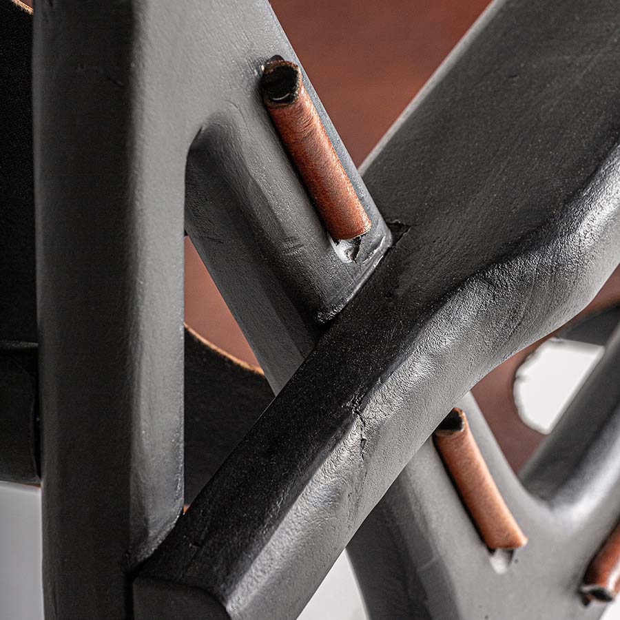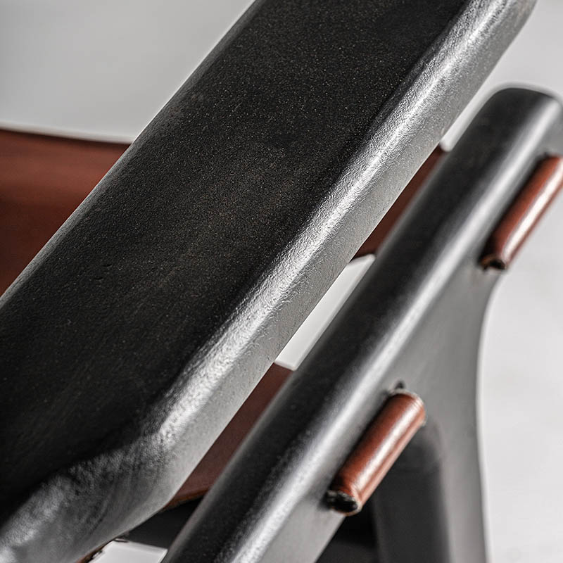 Sillón bourthes de estilo vintage fabricado en madera de mango en color negro combinado con piel en color marrón.