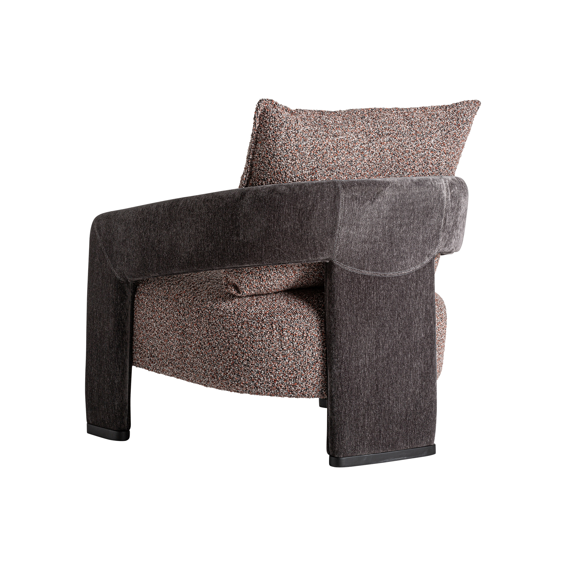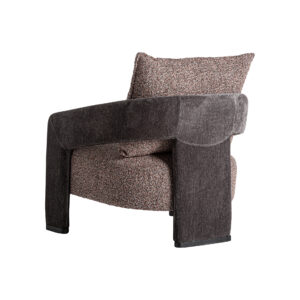 Sillón pavia de estilo contemporáneo fabricado en poliéster en color marrón combinado con madera de pino en color marrón.