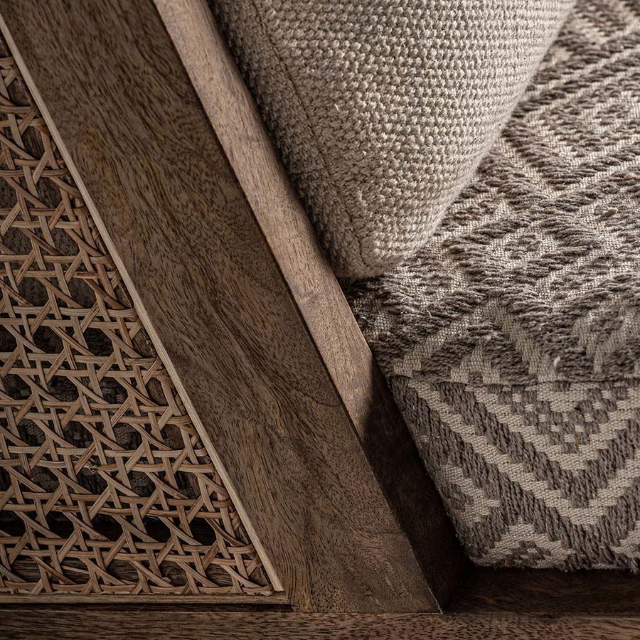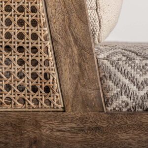 Sillón romarand de estilo clásico fabricado en madera de mango en color marrón combinado con mimbre en color beige y madera dm.
