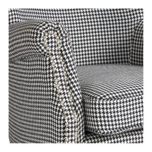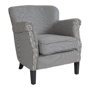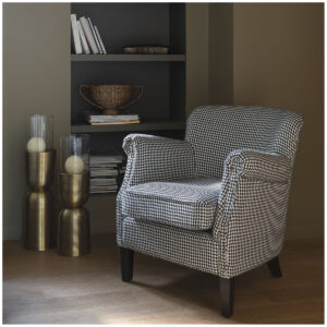 El Estudio de Creación Blanc d’Ivoire presenta su emblemático sillón CLAUDE con un estampado atemporal, icónico y elegante: la pata de gallo. Su estructura salpicada de clavos colocados a mano, su suave tapizado, su generoso asiento y sus grandes reposabrazos lo convierten en un asiento tan cómodo como sofisticado. Sus elegantes patas de abedul garantizan robustez y estabilidad.
