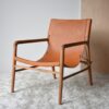 SILLÓN PIEL BEIGE Y PATA MADERA