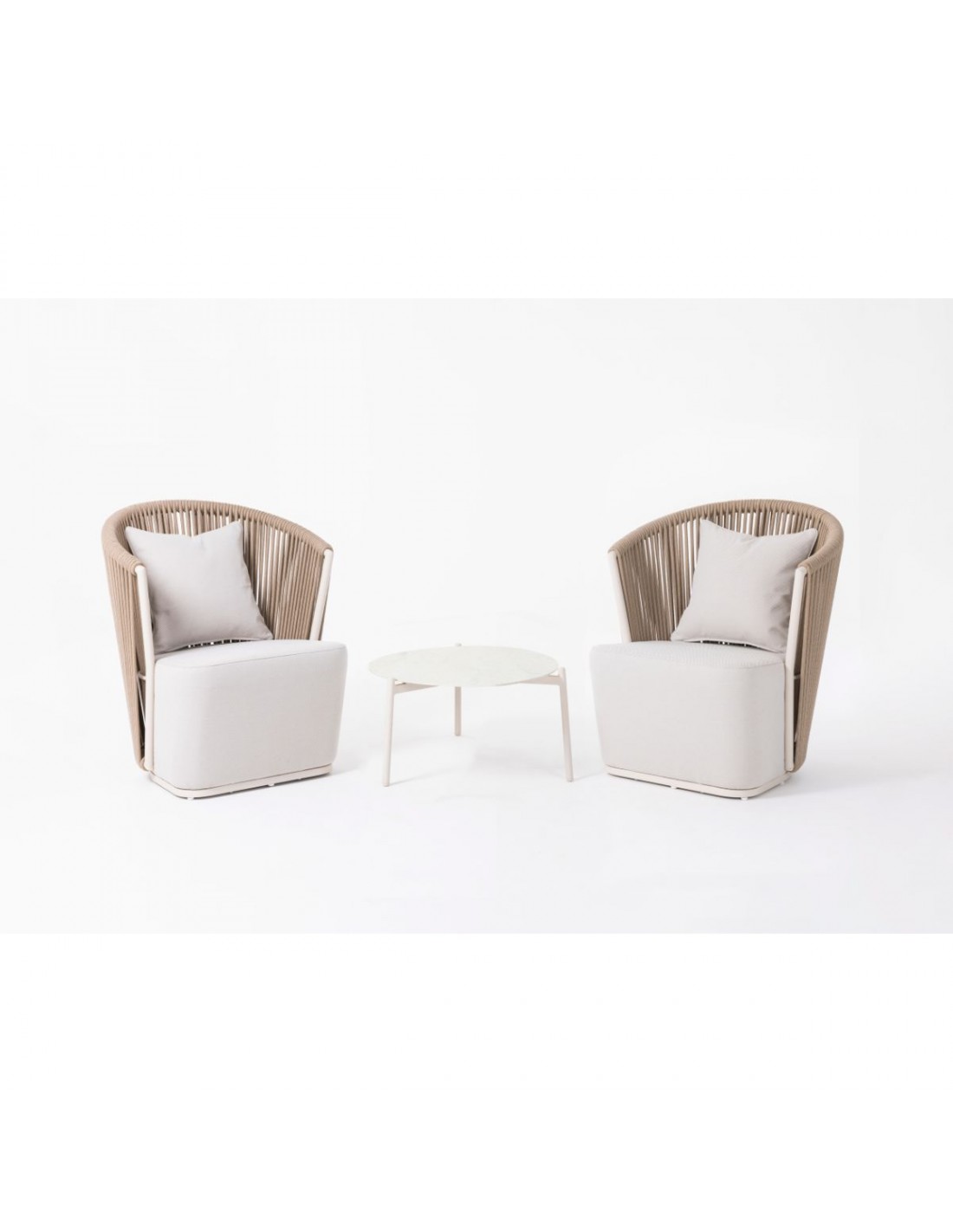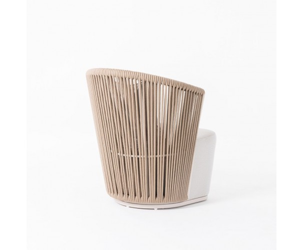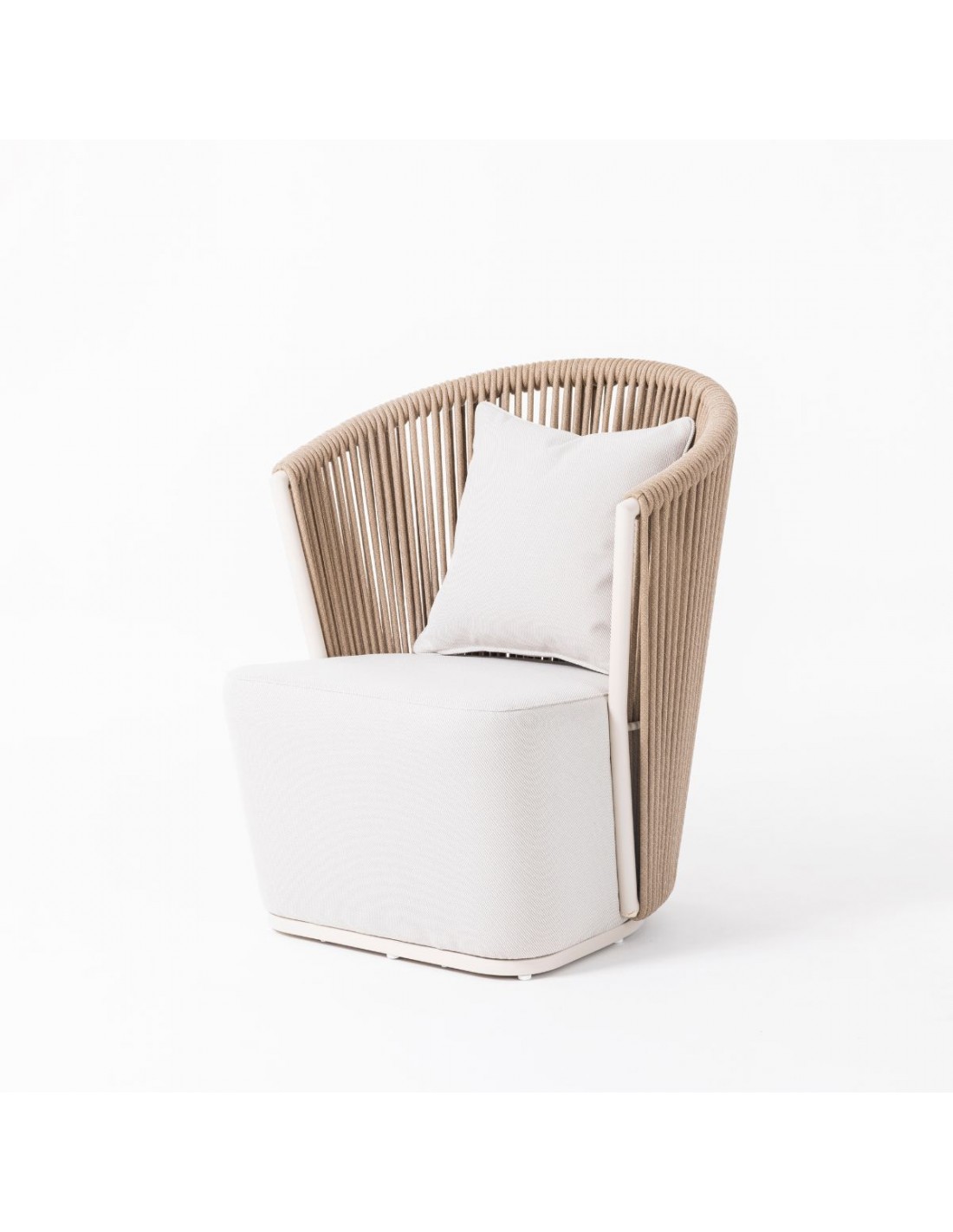 Sillón para exterior de cuerda y aluminio con estructura de aluminio en color IVORY y respaldo con cuerda formando líneas rectas. Disponible en más medidas y acabados. Se venden por separado.