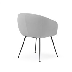 Sillón con tapicería en tono gris y patas de metal en color negro.Tapicería lavable con una bayeta húmeda. Tejido anti mancha.