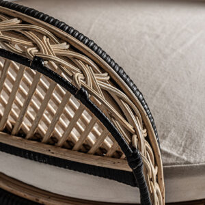 Sillón desouk, en color natural, de estilo contemporáneo. Fabricado en ratán, combinado con poliéster. Producto desenfundable.