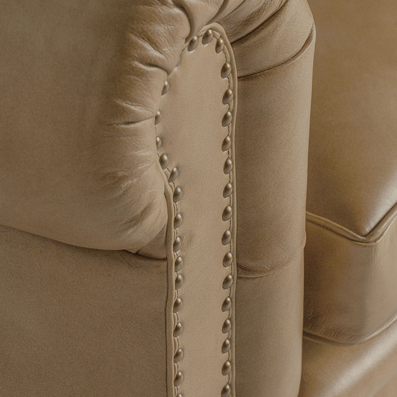 Sillón capitoné elkins de estilo vintage fabricado en piel en color marrón combinado con madera de acacia. Producto desmontable.