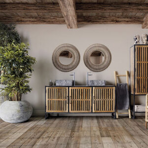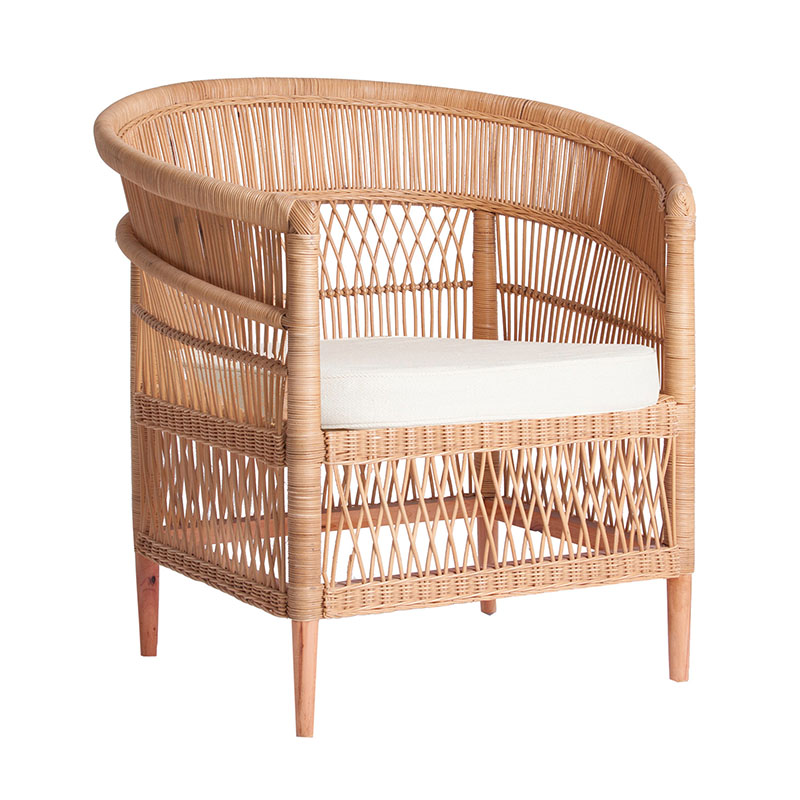 Sillón Elna de estilo contemporáneo fabricado en ratán en color marrón combinado con algodón y espuma. Producto desenfundable.
