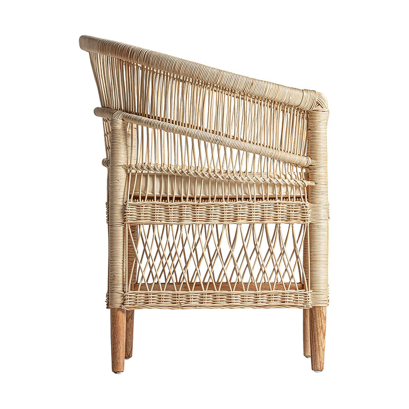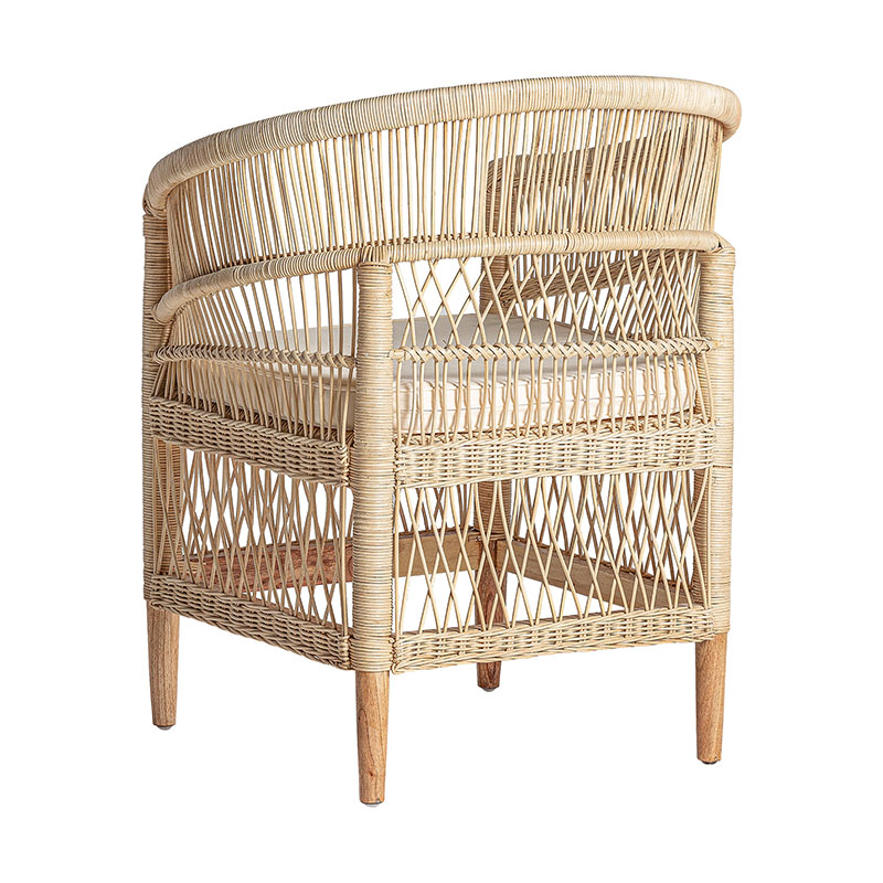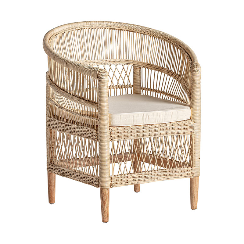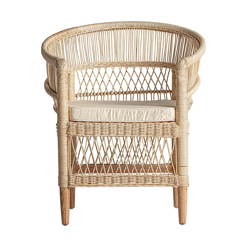 Sillón elna de estilo contemporáneo fabricado en ratán en color marrón combinado con madera mindi y algodón. Producto desenfundable.