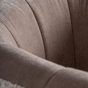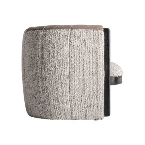 Sillón Erbach de estilo art deco fabricado en madera de pino en color marrón combinado con poliéster en color beige con acabado jaspeado y espuma.