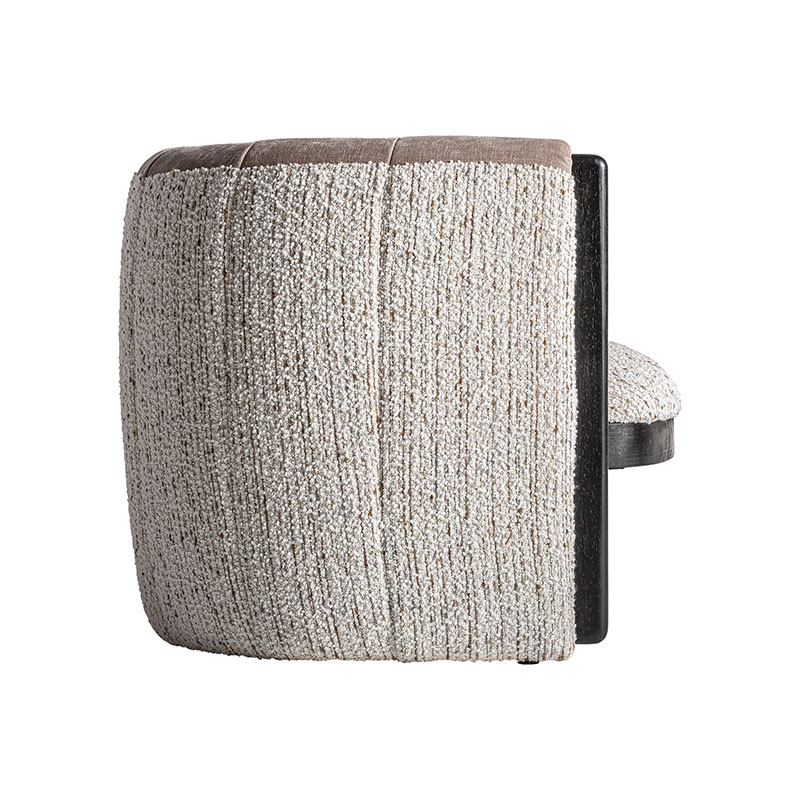Sillón Erbach de estilo art deco fabricado en madera de pino en color negro combinado con poliéster en color topo y espuma.