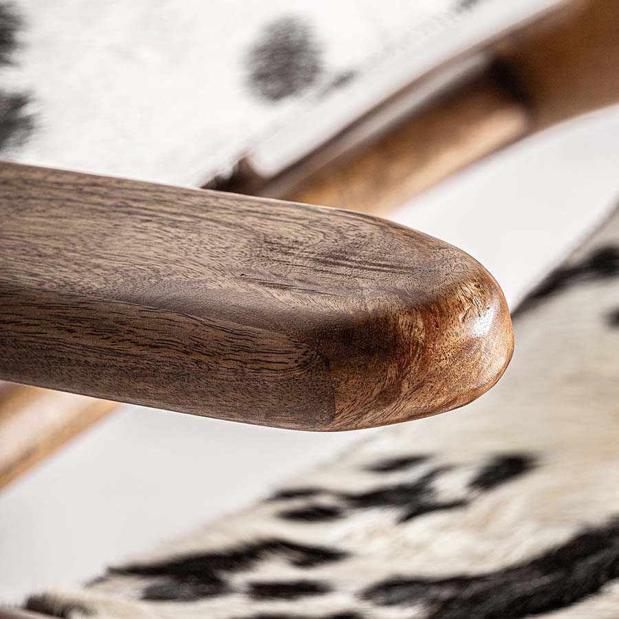 Sillón helfaut de estilo vintage fabricado en madera de mango en color marrón combinado con piel en color blanco.