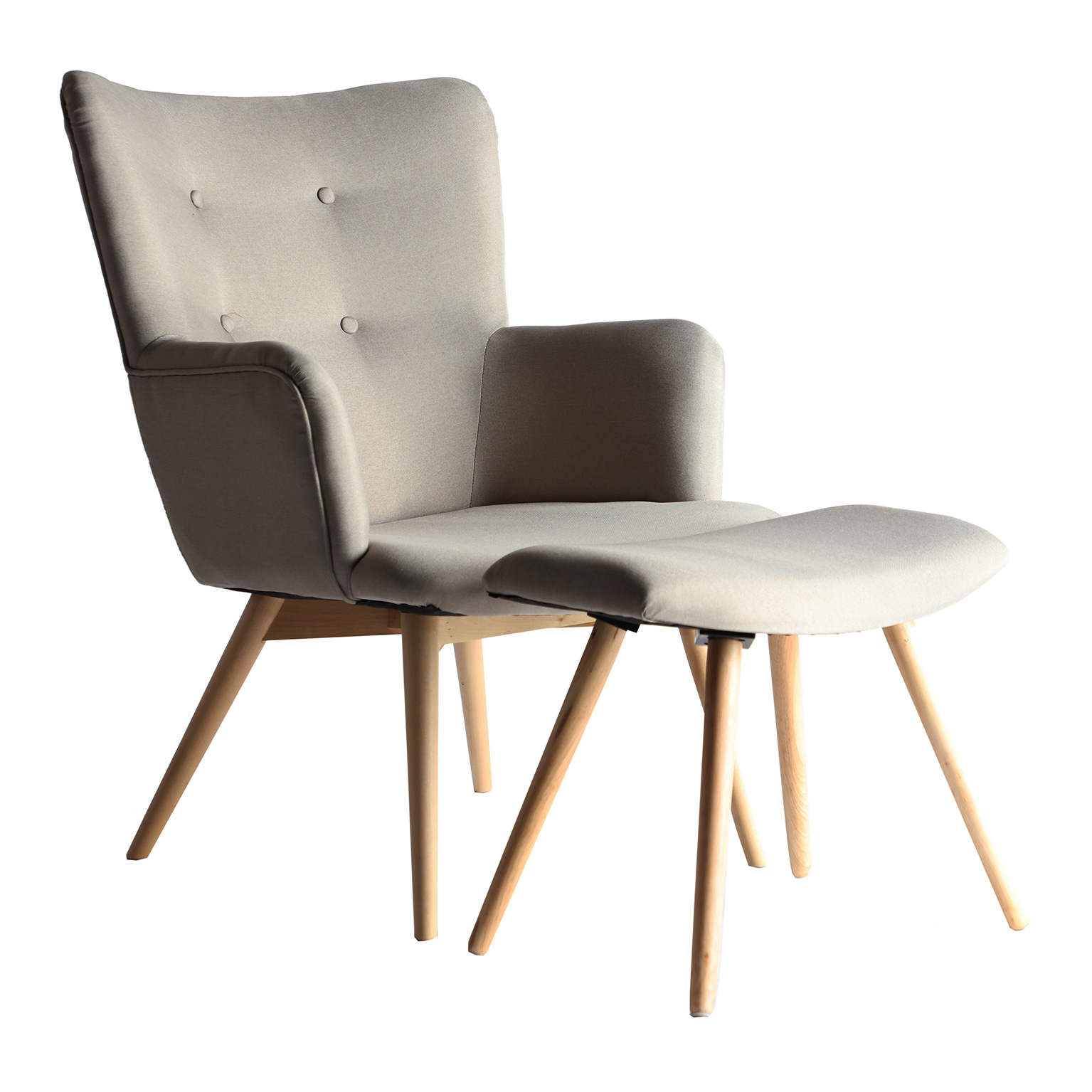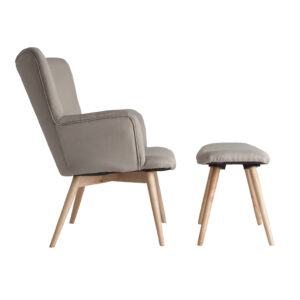 SILLÓN J/2 BOSTON, EN COLOR GRIS, DE ESTILO VINTAGE. FABRICADO EN POLIÉSTER, COMBINADO CON MADERA ABEDUL Y ESPUMA. SILLÓN + REPOSAPIÉS. PRODUCTO DESMONTABLE.