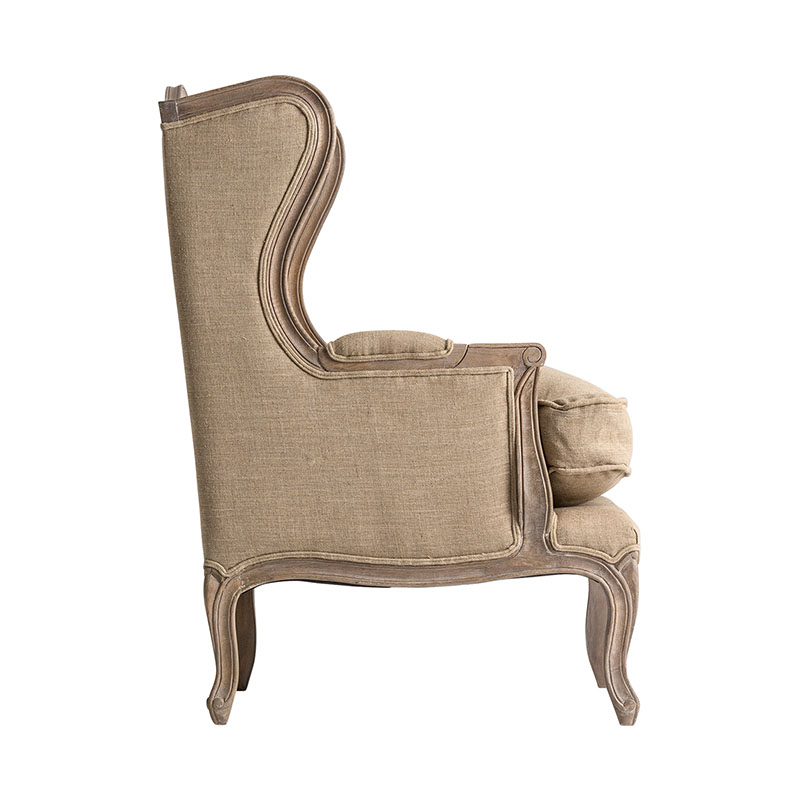 Sillón jouy en color crema de estilo clásico. Fabricado en madera de mango combinado con algodón y lino. Producto desenfundable.
