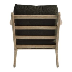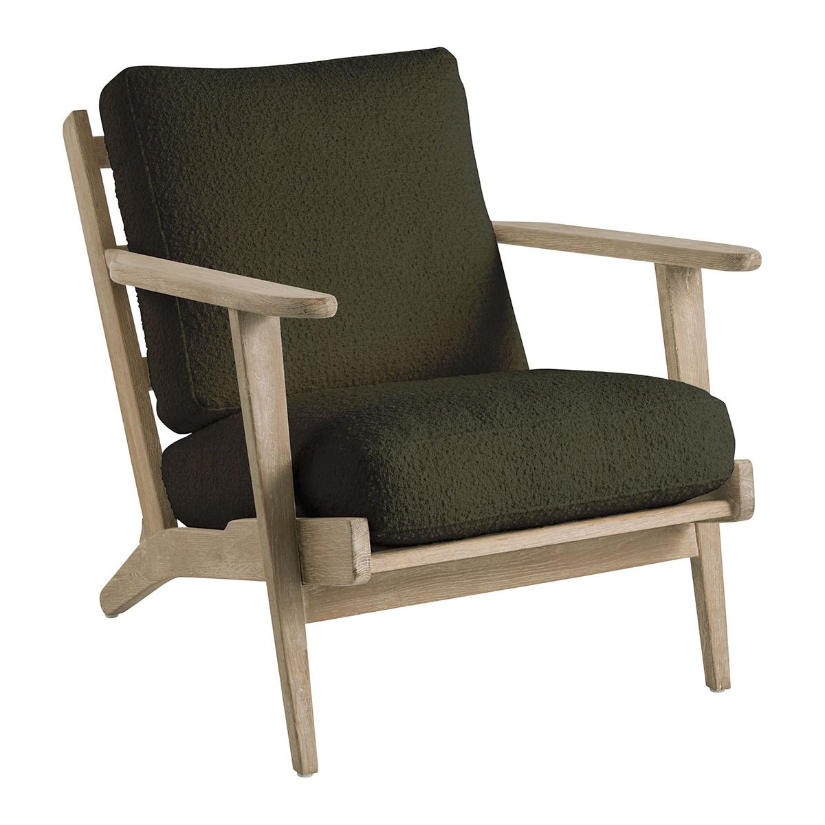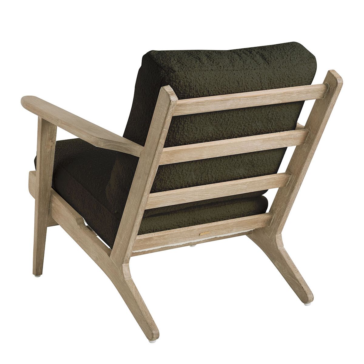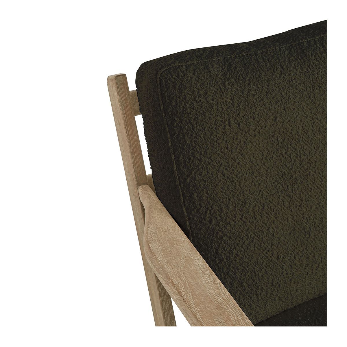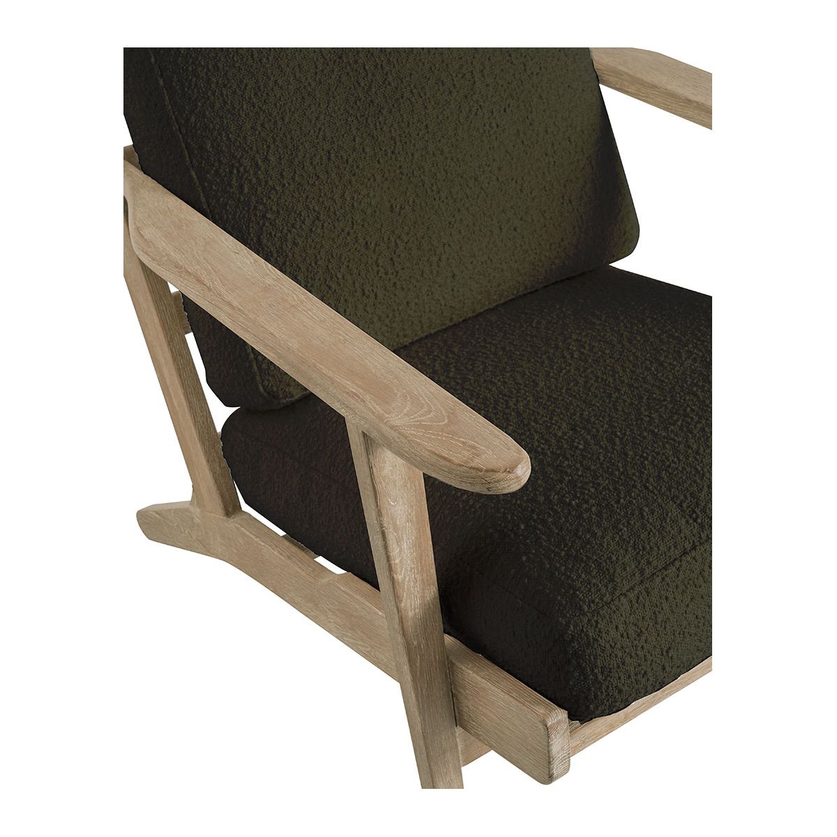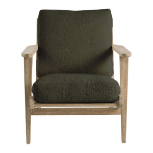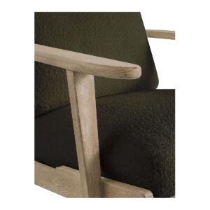 Déjate seducir por el diseño pulcro y elegante del sillón JULES. Su estructura de madera maciza y su irresistible tejido de rizo caqui aportarán un toque cálido y atemporal a la decoración de tu interior.