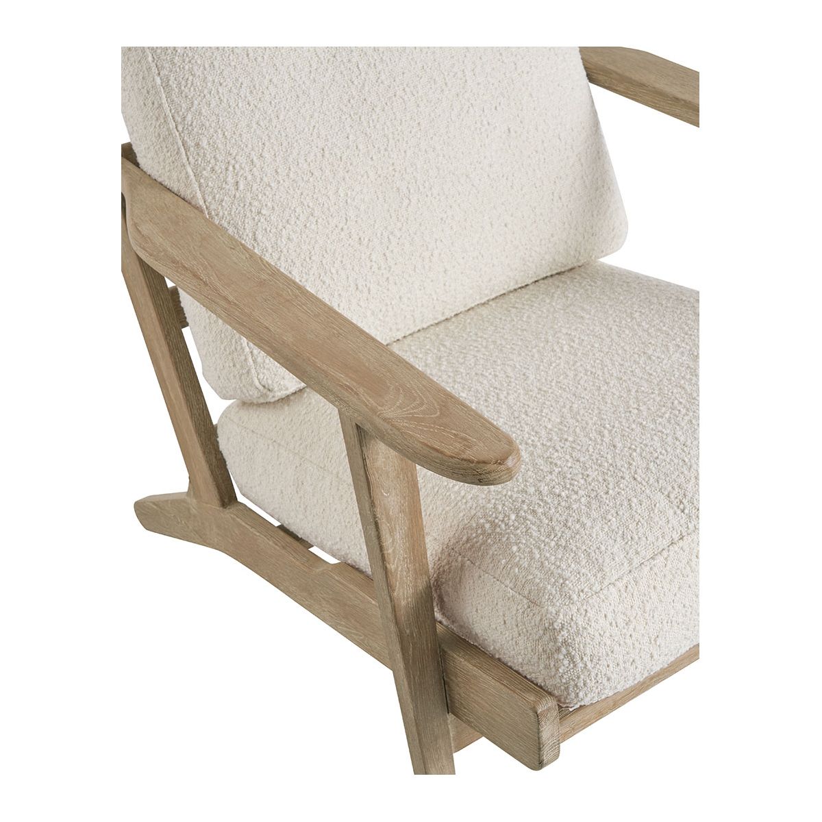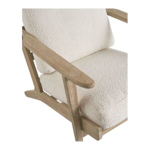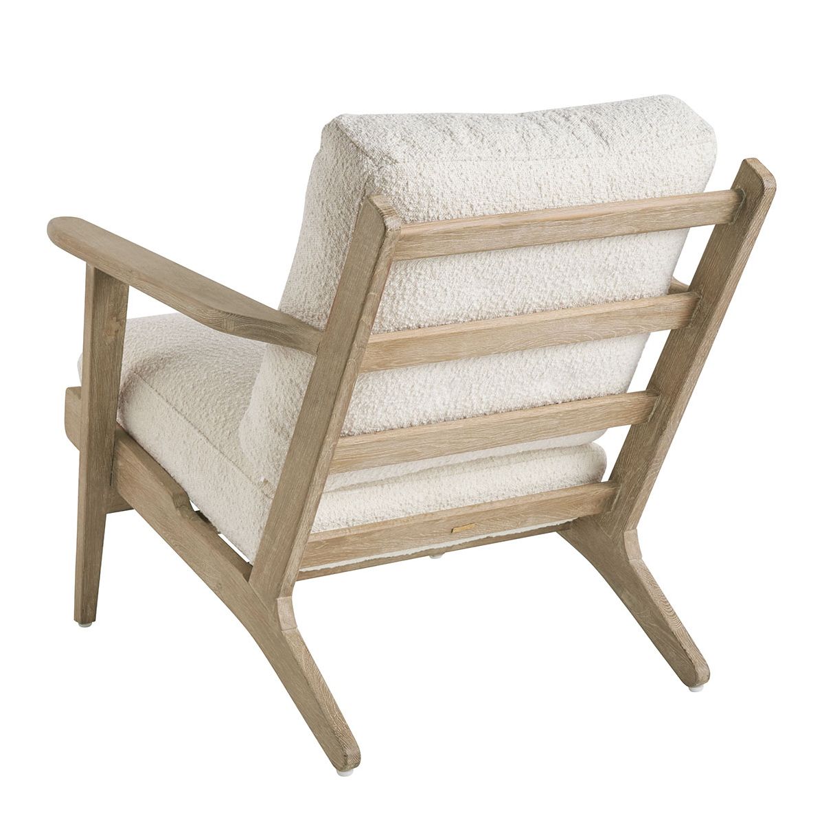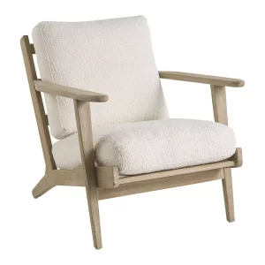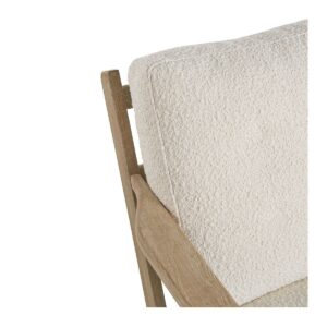 Déjate seducir por el diseño pulcro y elegante del sillón JULES. Su estructura de madera maciza y su irresistible tejido de rizo color crema aportarán un toque cálido y atemporal a la decoración de tu interior.