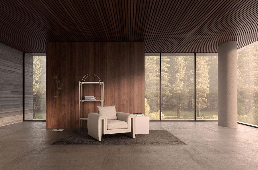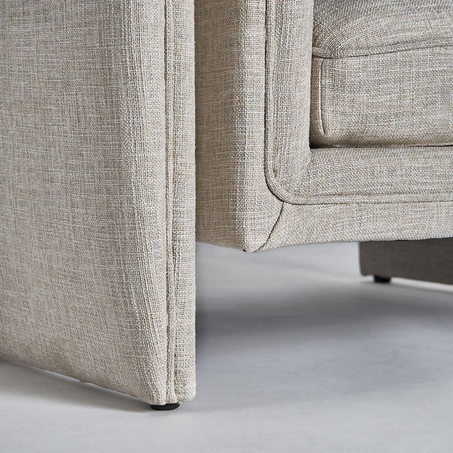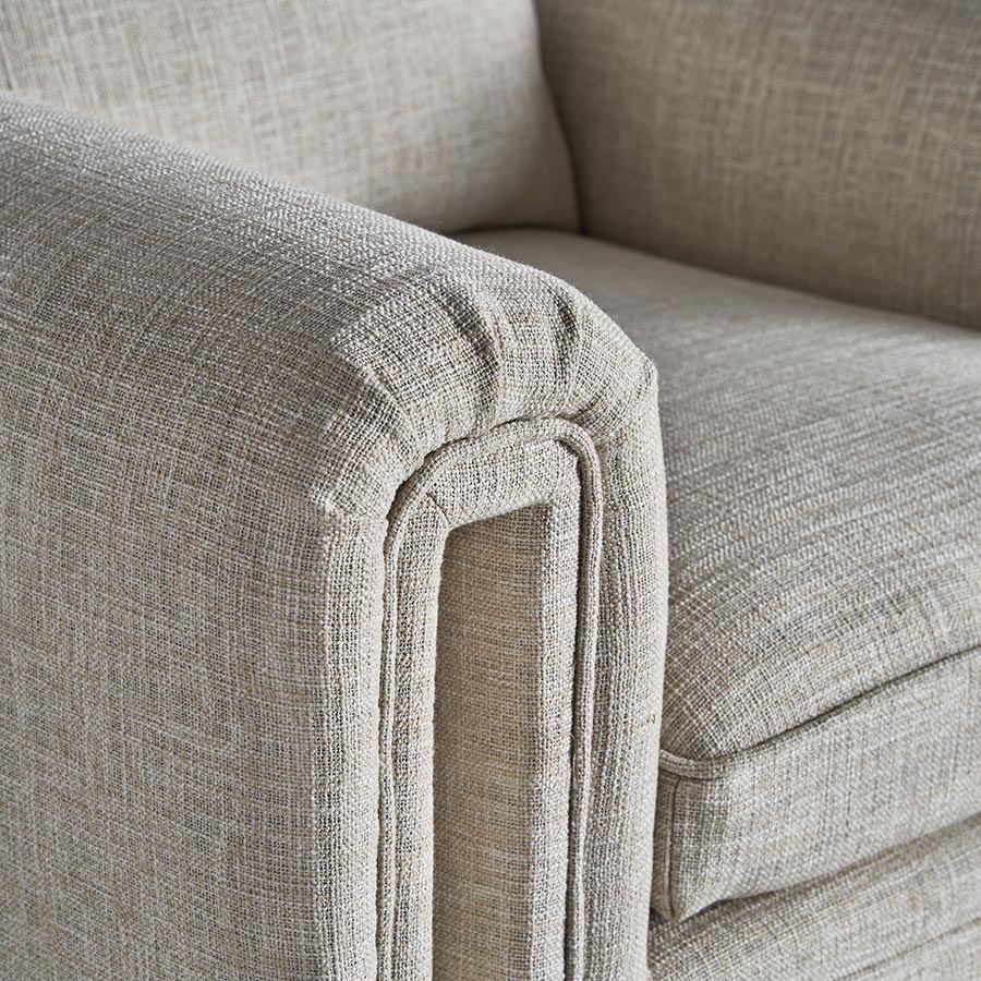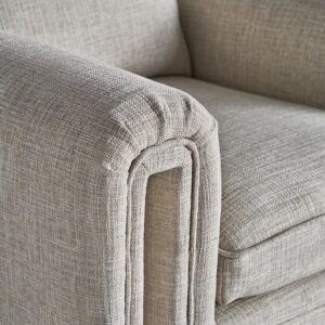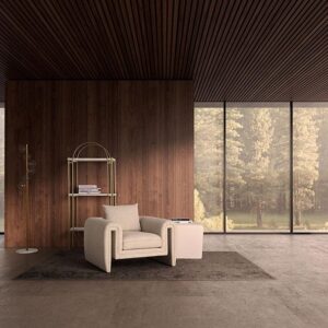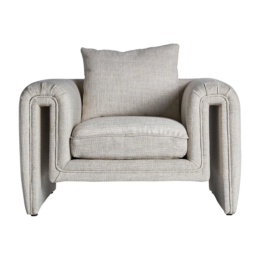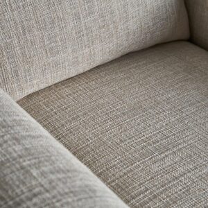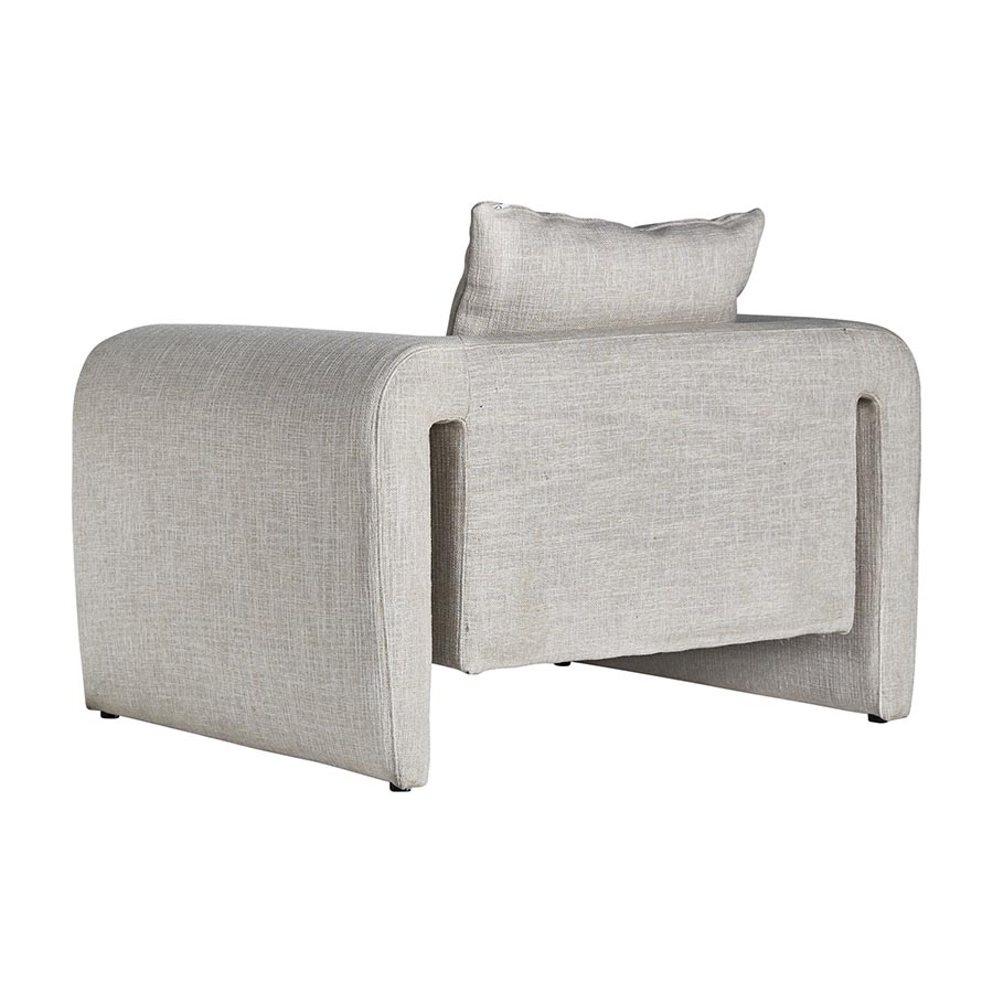 Sillón karka de estilo contemporáneo fabricado en madera de pino en color gris combinado con poliéster y espuma. Producto desenfundable.