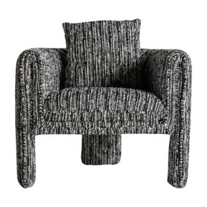 Sillón kostov de estilo contemporáneo fabricado en poliéster en color negro con acabado jaspeado combinado con madera de pino y madera contrachapada.
