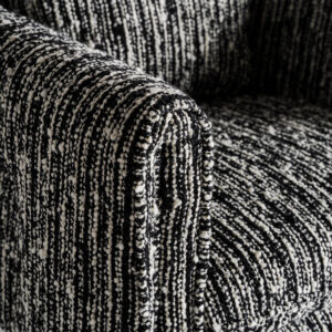 • Sillón kostov de estilo contemporáneo fabricado en poliéster en color negro con acabado jaspeado combinado con madera de pino y madera contrachapada.