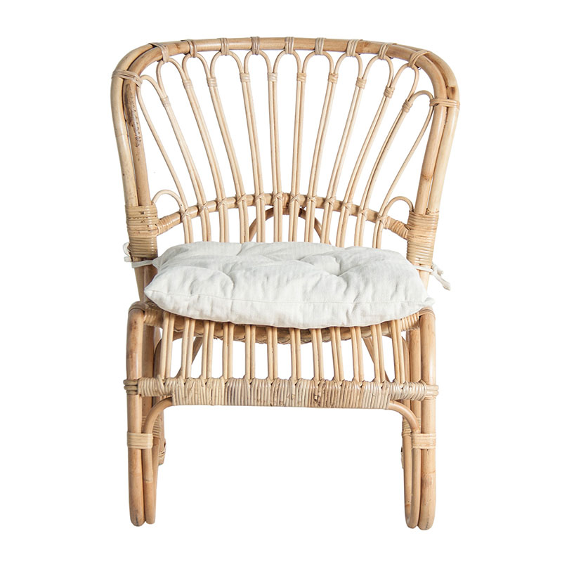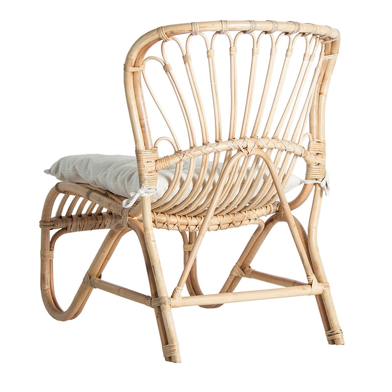 Sillón lipsko, en color marrón, de estilo contemporáneo. Fabricado en ratán, combinado con algodón.