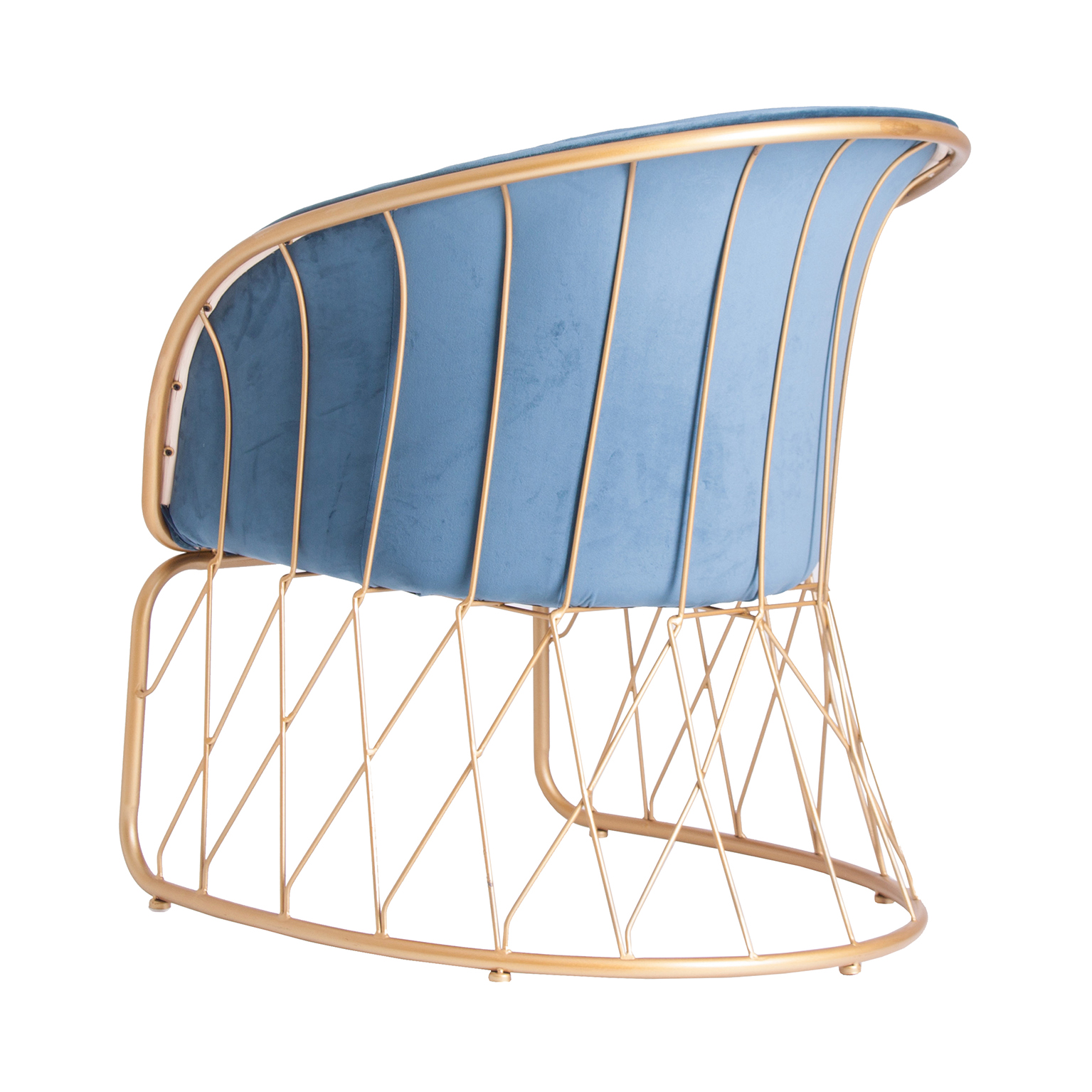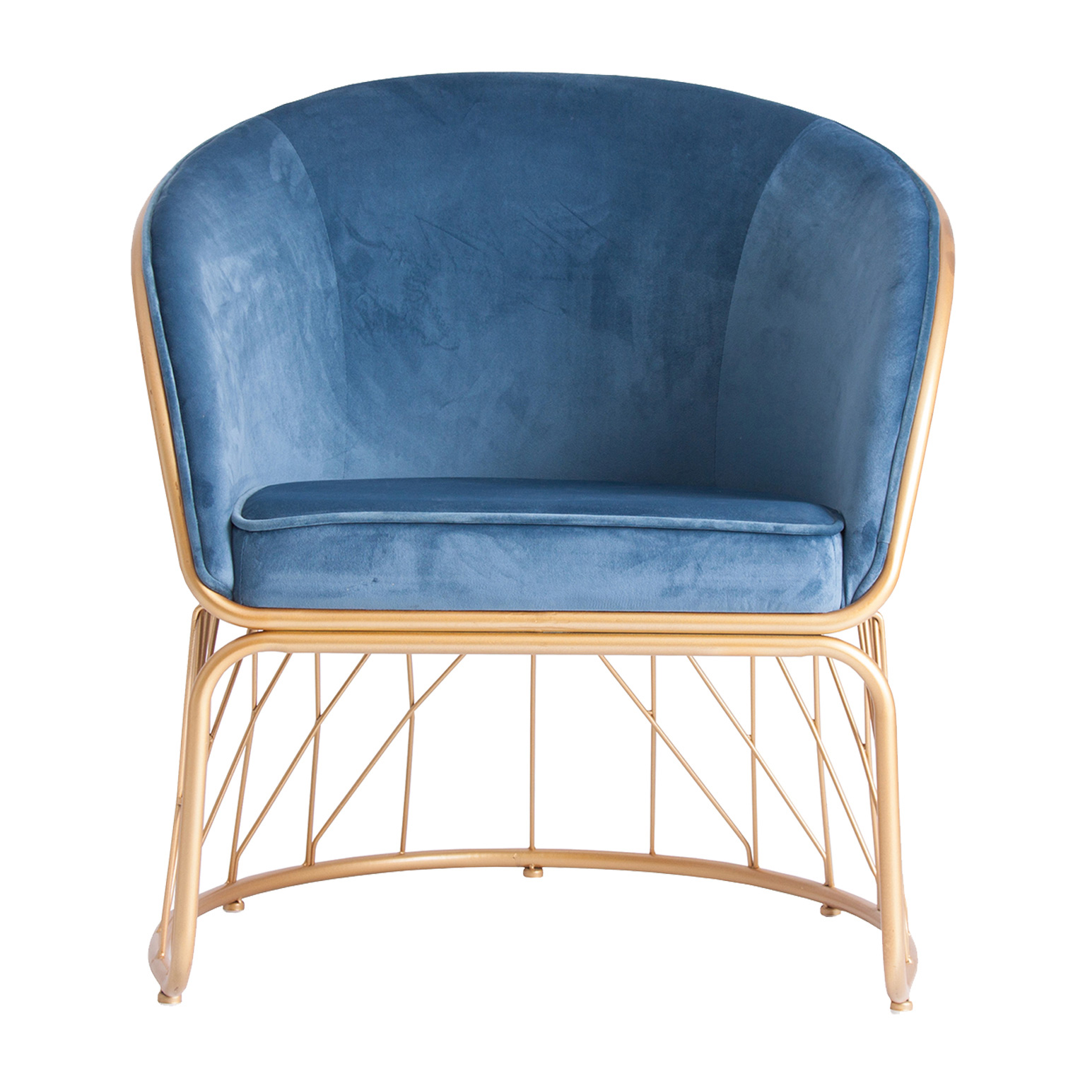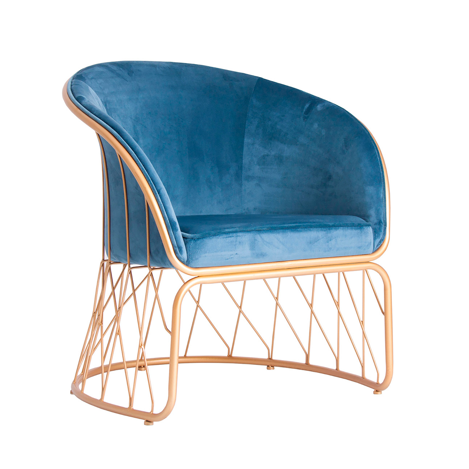 SILLÓN LUCERNA, EN COLOR AZUL/ORO, DE ESTILO ART DECO. FABRICADO EN TELA, COMBINADO CON HIERRO.