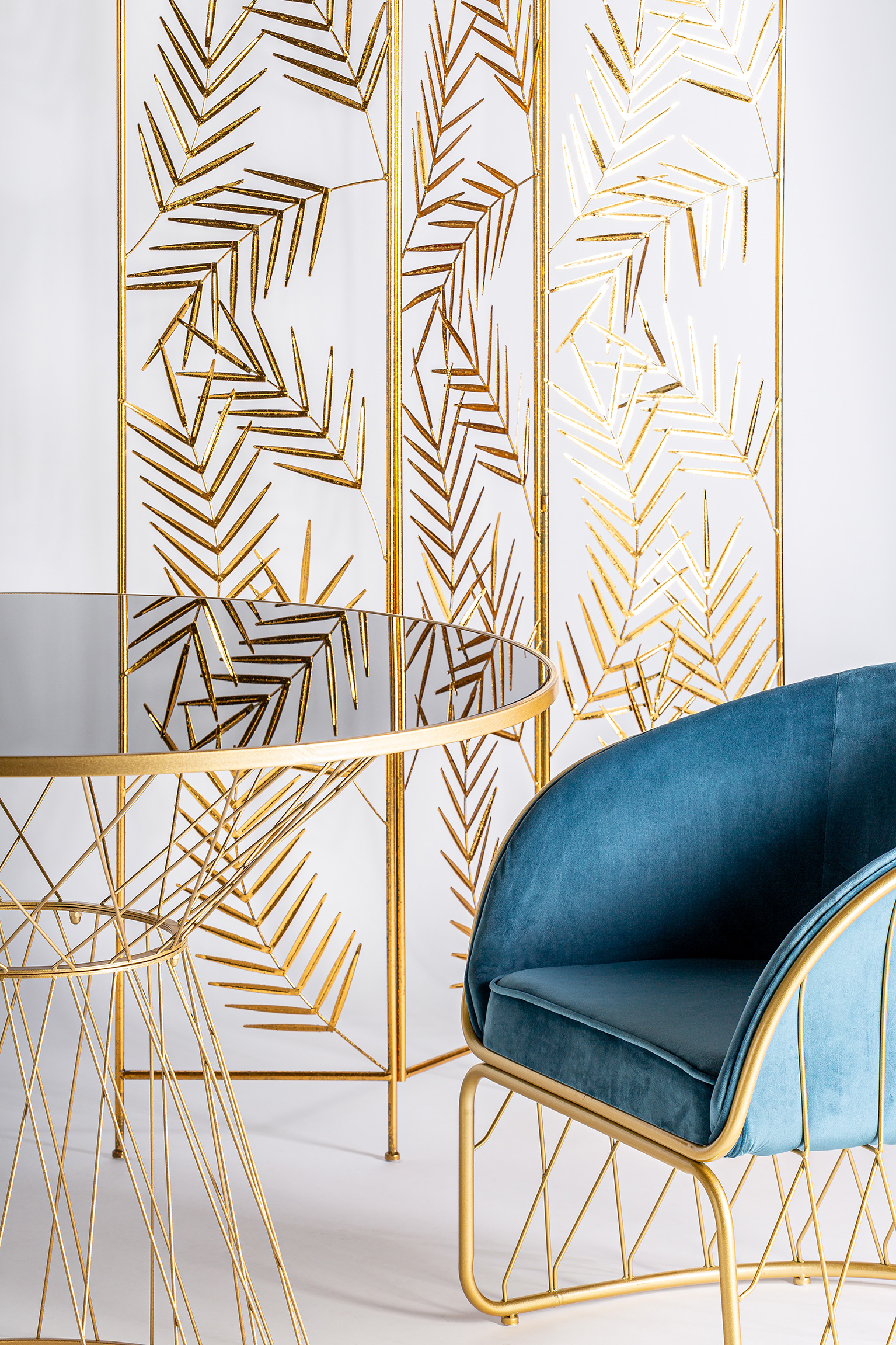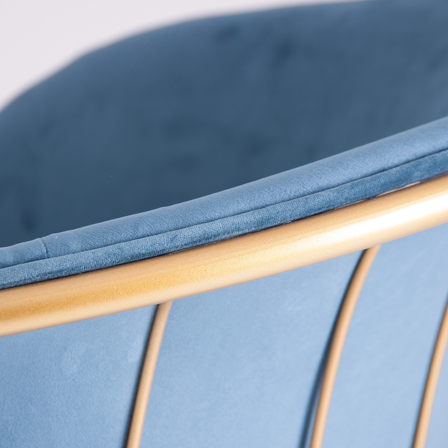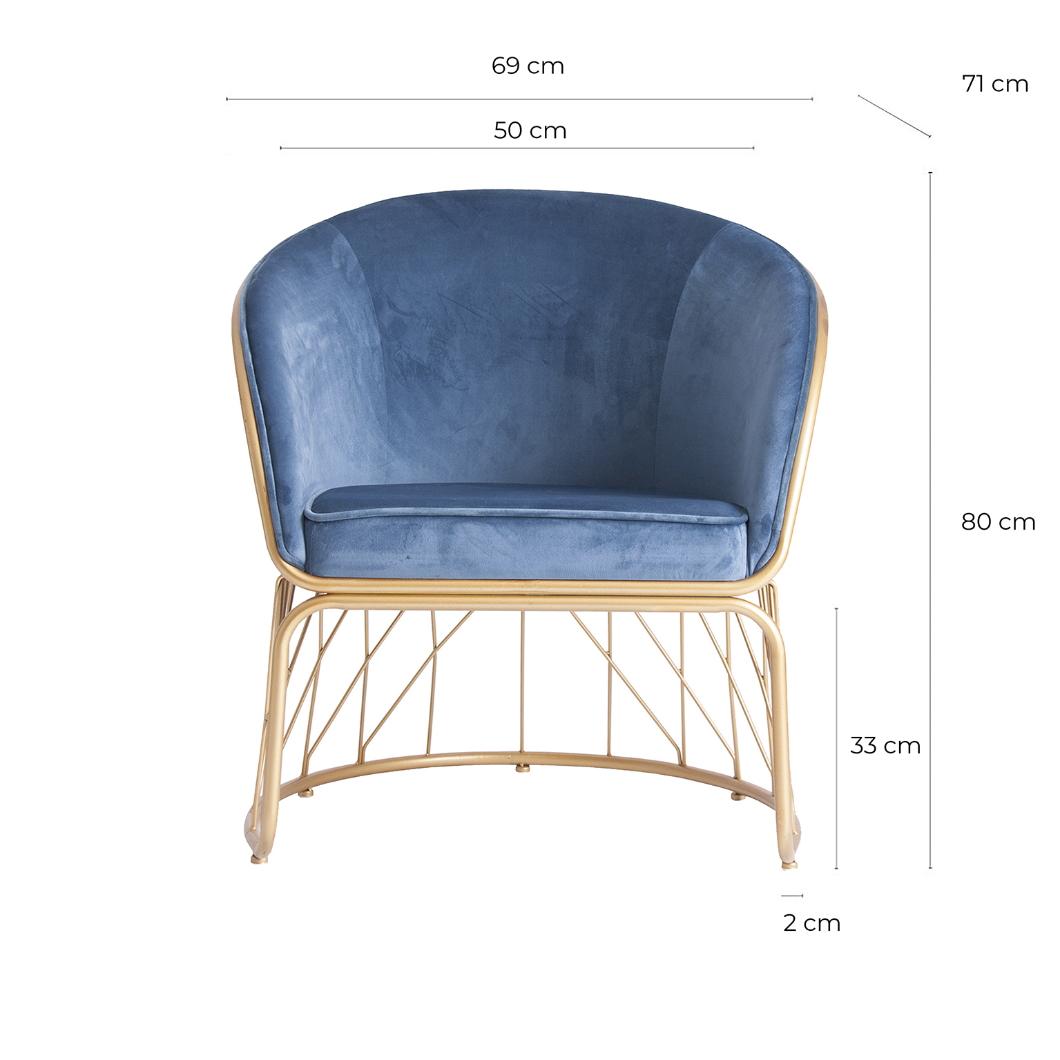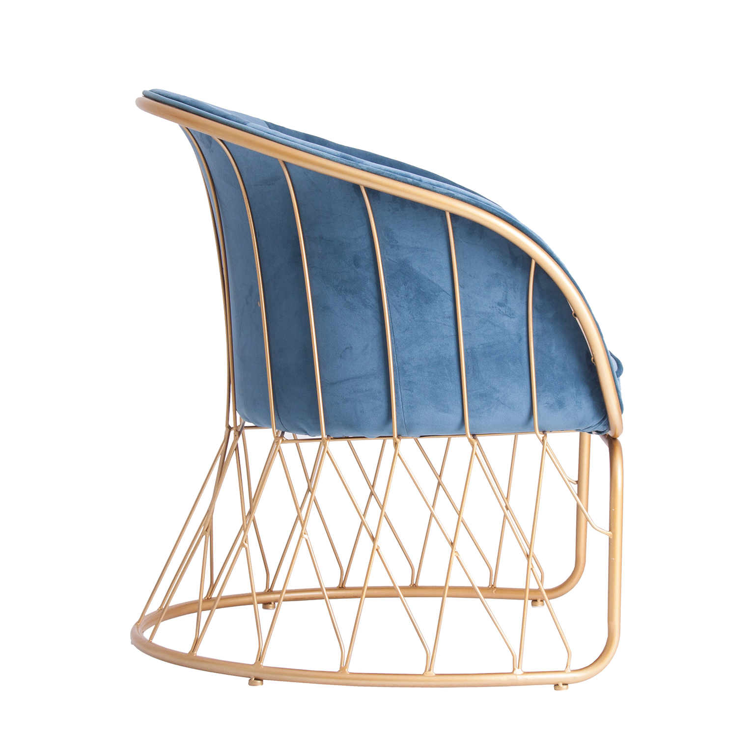 SILLÓN LUCERNA, EN COLOR AZUL/ORO, DE ESTILO ART DECO. FABRICADO EN TELA, COMBINADO CON HIERRO.